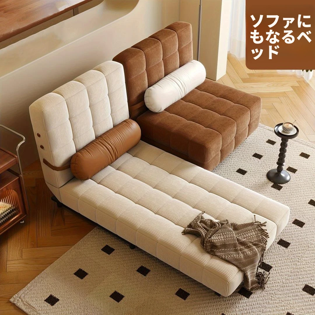 【香港送料無料】フレンチクリームソファベッド 折りたたみ式 多機能 一人用 小型リビングに最適なレトロスタイル!おしゃれで便利なデザインで、スペースを有効活用!