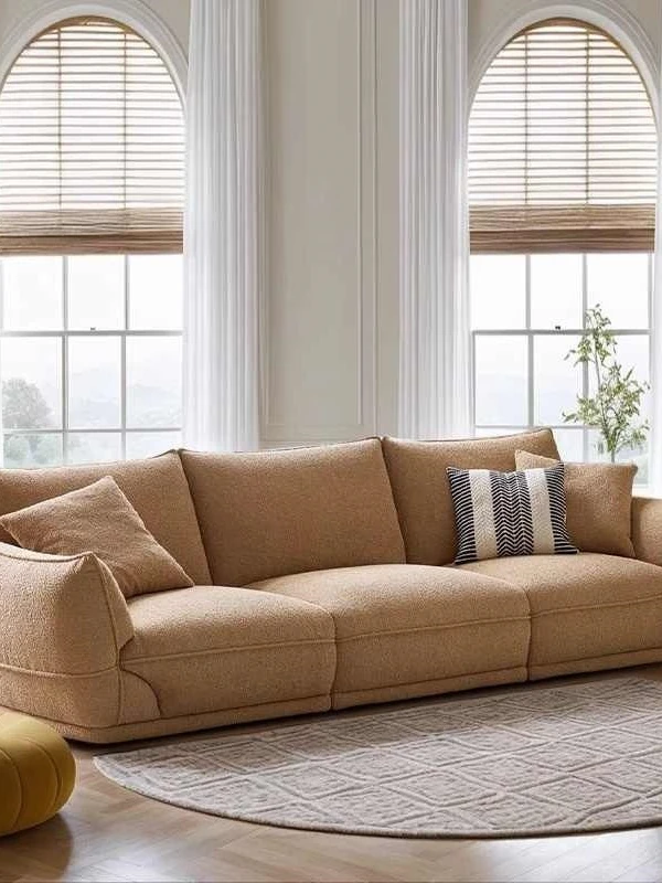 イタリアンミニマリズムのシニールコットンリネン布張りソファ|ネコの爪とぎにも最適!シンプルでモダンなデザイン、ラグジュアリーなリビングを演出する高品質ソファ。