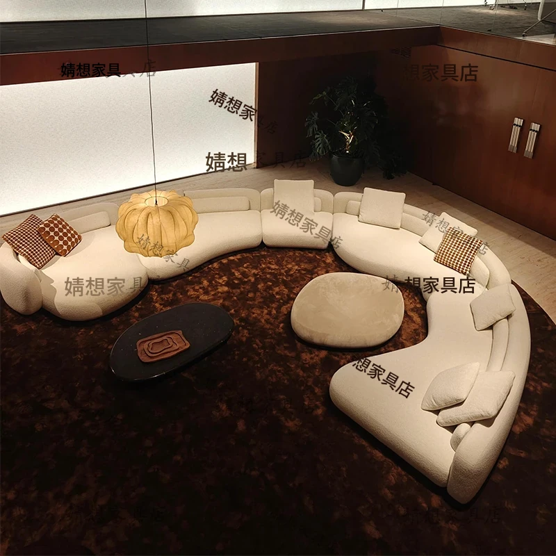 イタリアンラグジュアリーのリビングルームにぴったり!ヴィラスタイルの広々としたフラット用、サロンや会議スペースに最適なハーフ円形ソファ。快適さとスタイルを兼ね備えた、優雅なひとときを演出します。