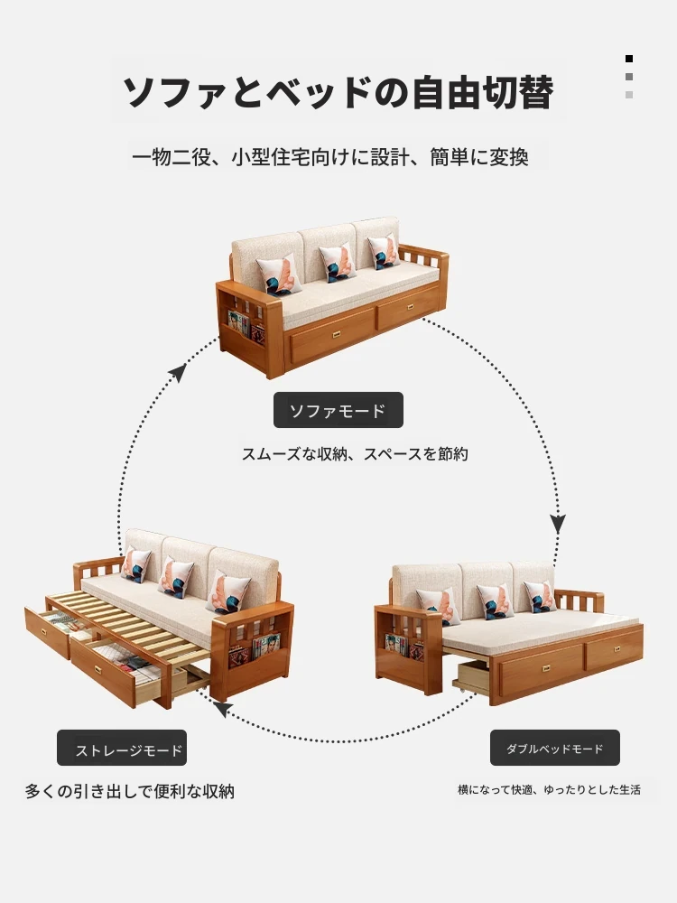 【香港送料無料】実木製ソファベッド 折りたたみ式 収納付き 1.5m 多機能伸縮式 小スペース向け 快適な座り心地と寝心地を実現!