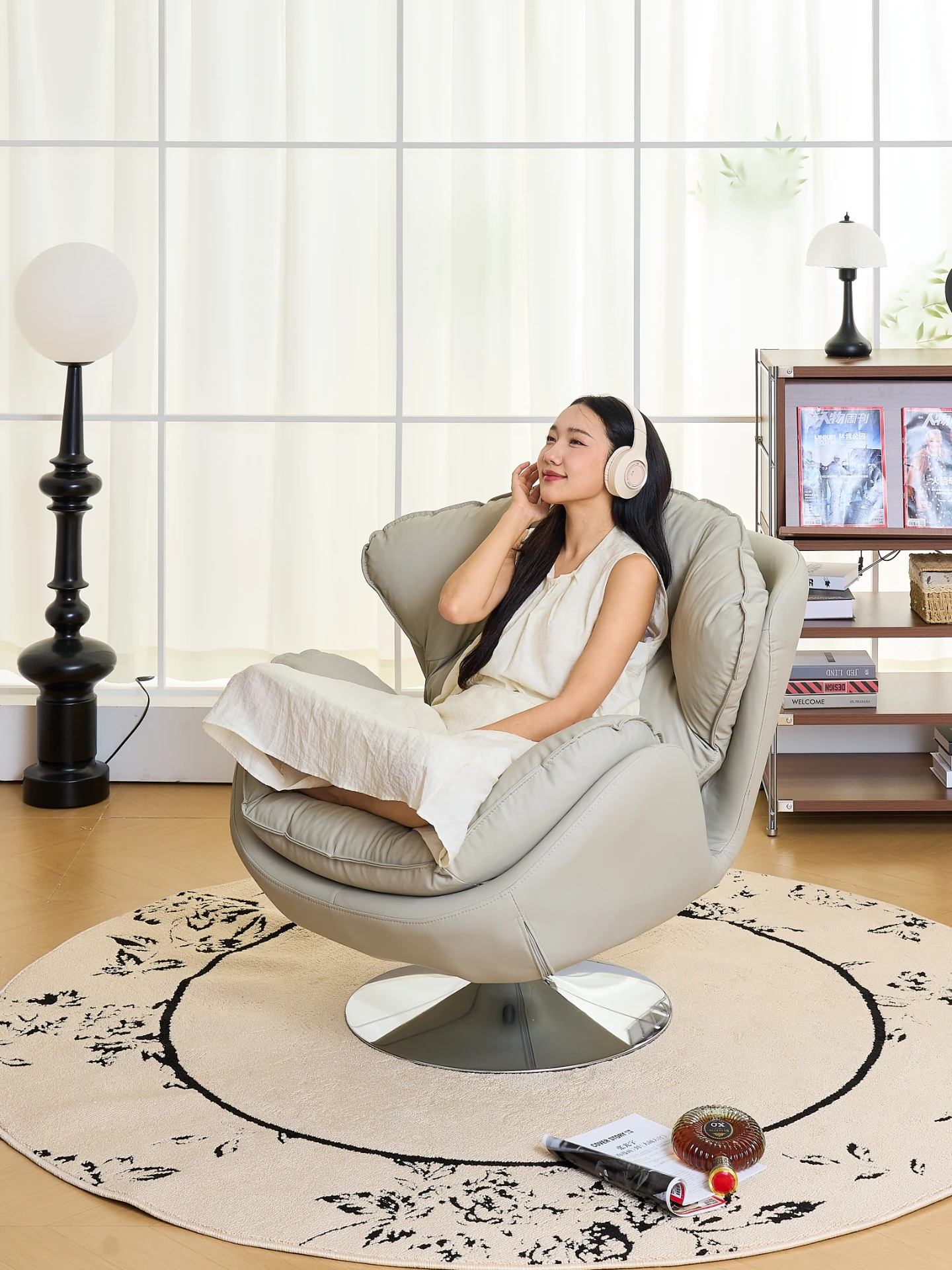 デザイナーによるリラックスソファチェア - 高級別荘向けの本革軽奢スタイル!おしゃれなリビングやバルコニーに最適、回転機能付きで快適なひとときを提供します。