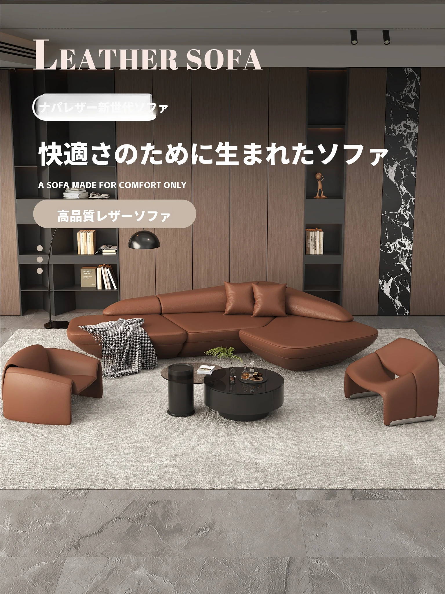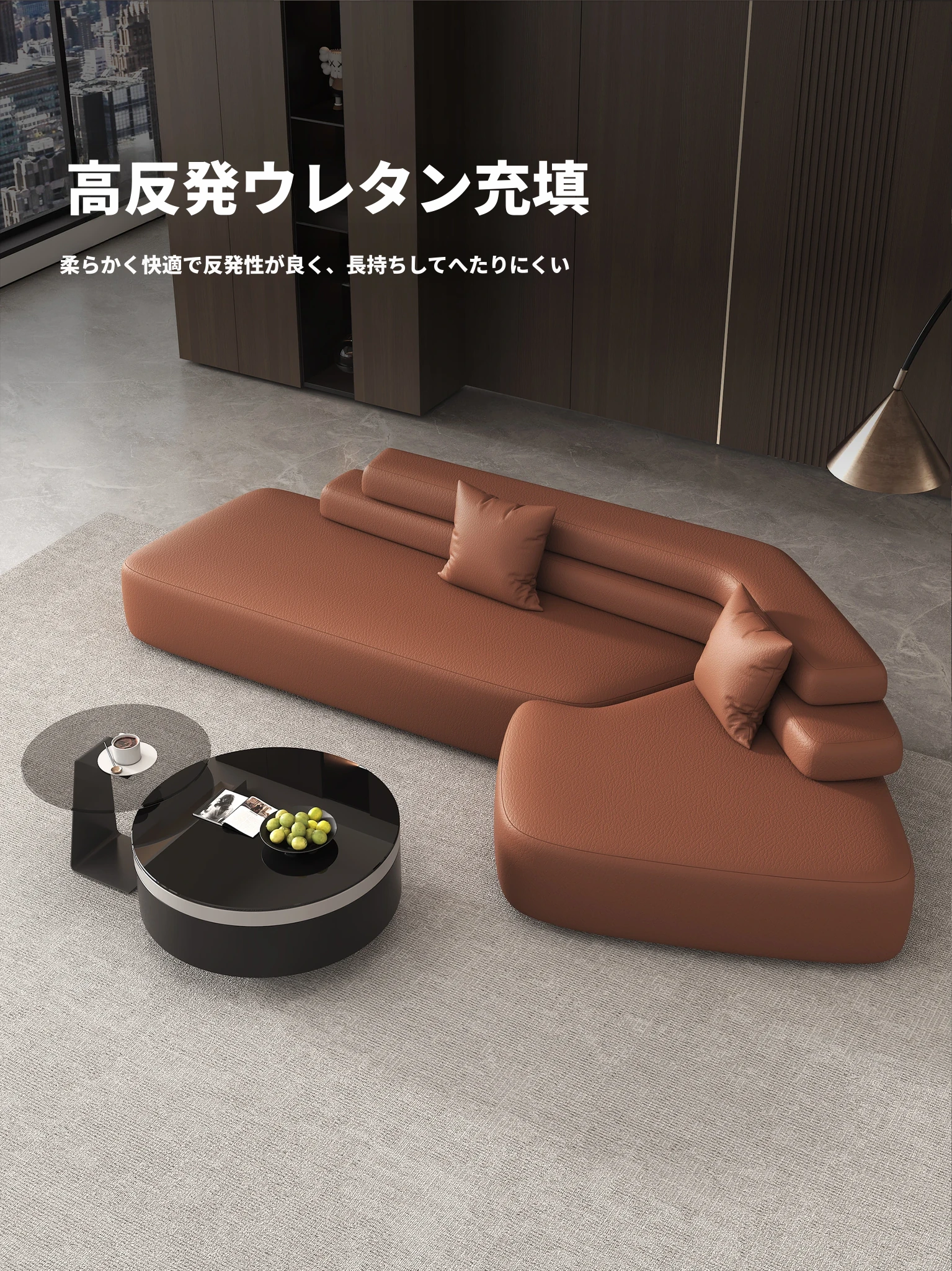 高級感溢れる斜めコーナーソファ|ラグジュアリーな空間に最適!広々としたリビングルームやホテルのロビー、オフィスの休憩エリアにもぴったり!快適さとスタイルを兼ね備えた一品です。