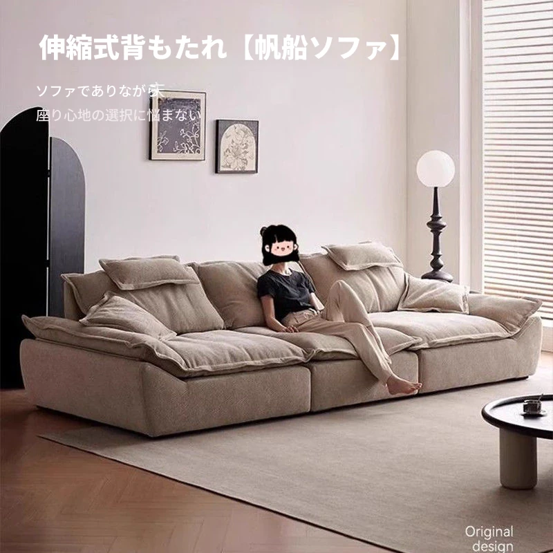 デジート雲のソファー!小型住宅に最適な、ダウン入りクリーム風モダンデザインのリビング用ソファ。深い座面で快適さ満点、シンプルでスタイリッシュな布張り!