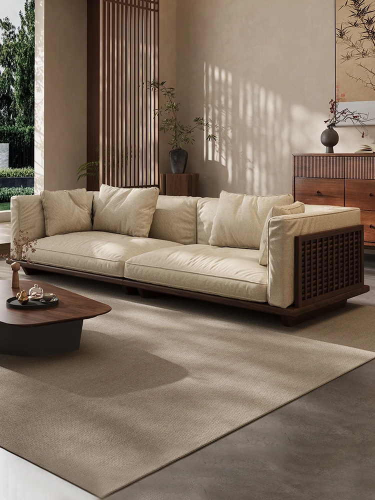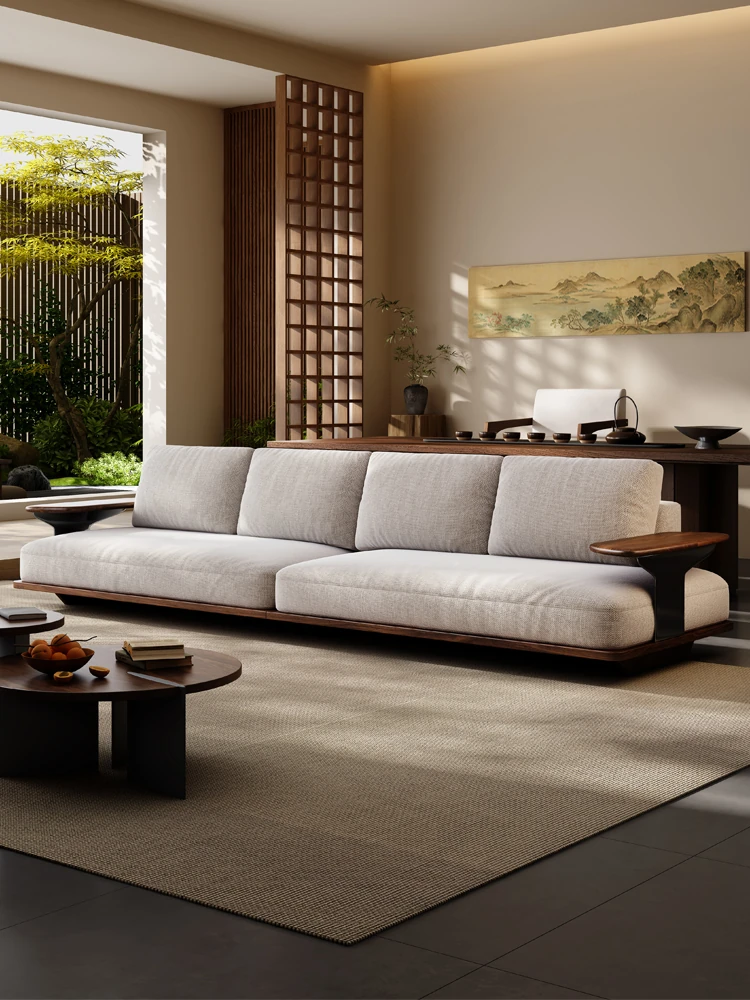 2025 New Arrival: Solid Black Walnut Sofa for Living Room - Modern Chinese Style with Directly Placed Cotton Linen Fabric, Inspired by Song Aesthetics, Perfect for Stylish Homes