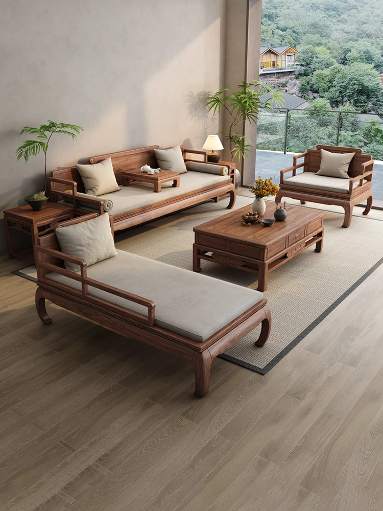 Song Dynasty Aesthetic Solid Wood Sofa - New Chinese Style South American Walnut Chaise Lounge Set for Large and Small Living Rooms - Elegant Song-Style Sofa