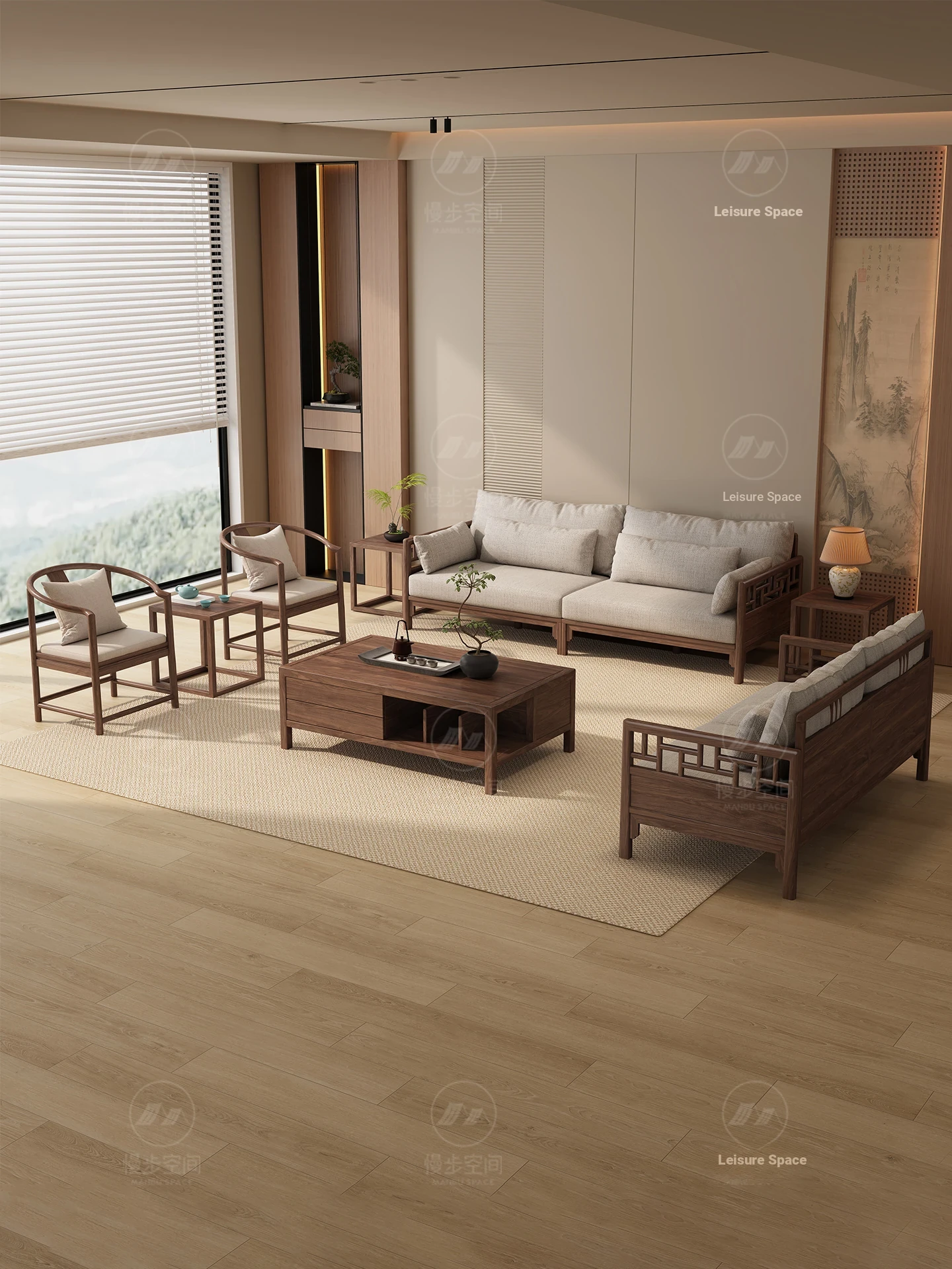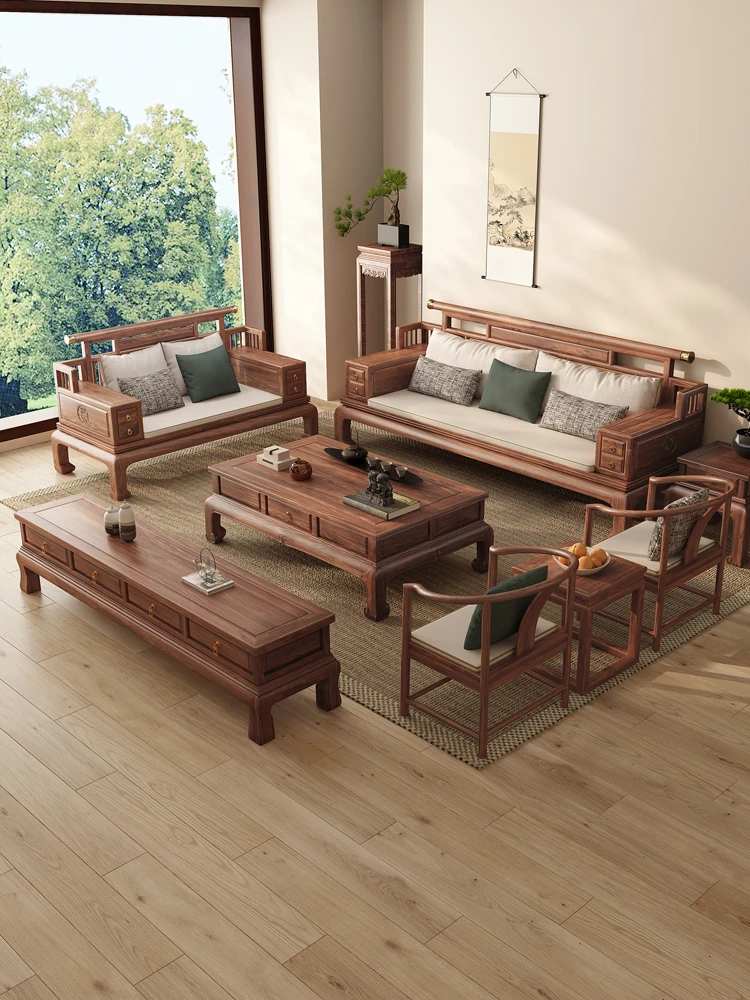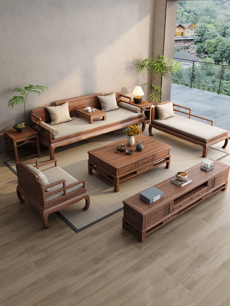 2025 New Chinese Style Sofa Set - Song Aesthetic Solid Walnut Wood Living Room Combination for Tea House and Lounge