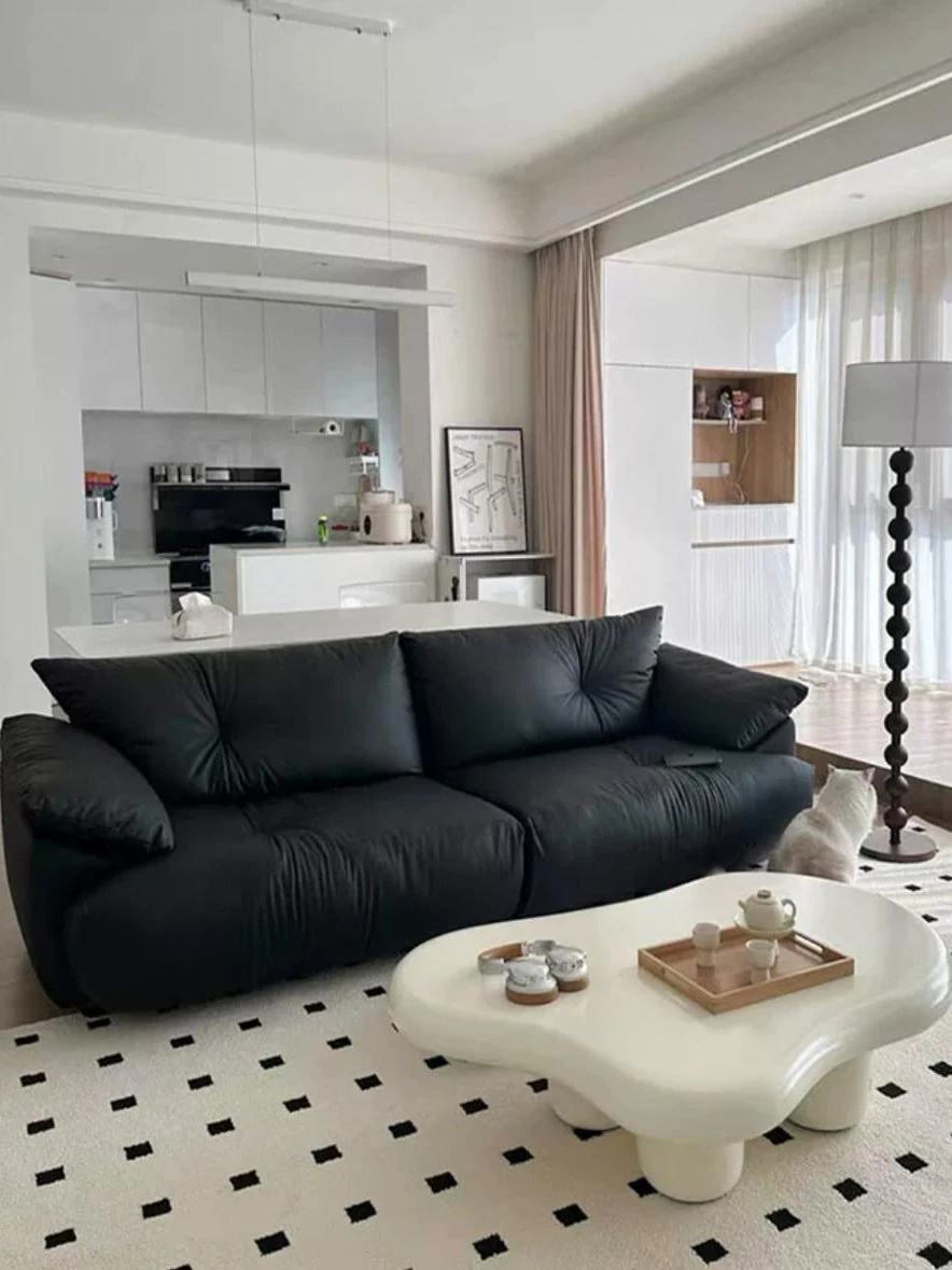 Nordic Minimalist Luxury Designer Sofa for Small Living Rooms - Genuine Down-Filled Leather and Top-Grain Cowhide with Innovative Fabric Design