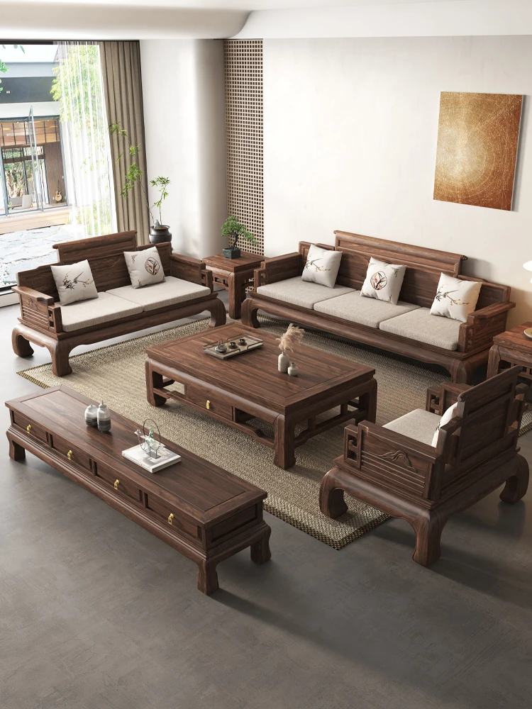 2025 New Style South American Walnut Sofa Set - Elegant Song Dynasty Aesthetics, Solid Wood, Versatile for Winter and Summer, Perfect for Your Living Room!