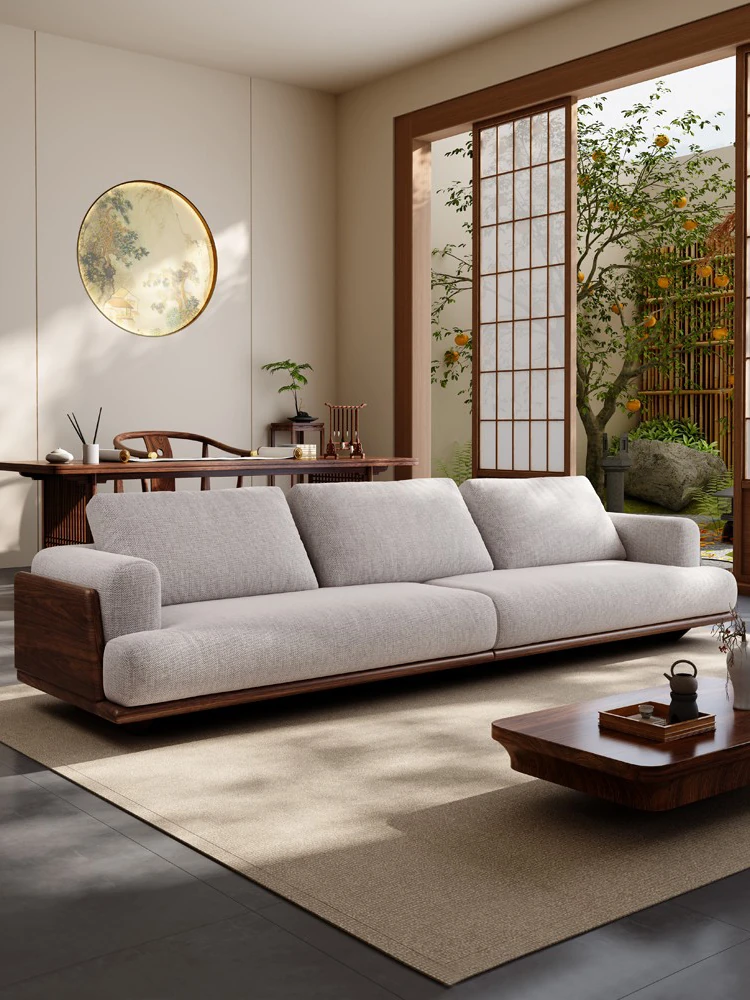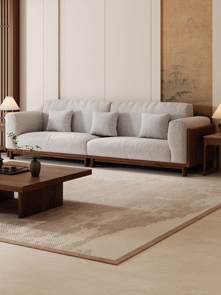 2025 New Arrivals: Solid Black Walnut Sofa for Living Room - Modern Chinese Style with Directly Placed Cotton-Linen Fabric, Inspired by Song Aesthetics