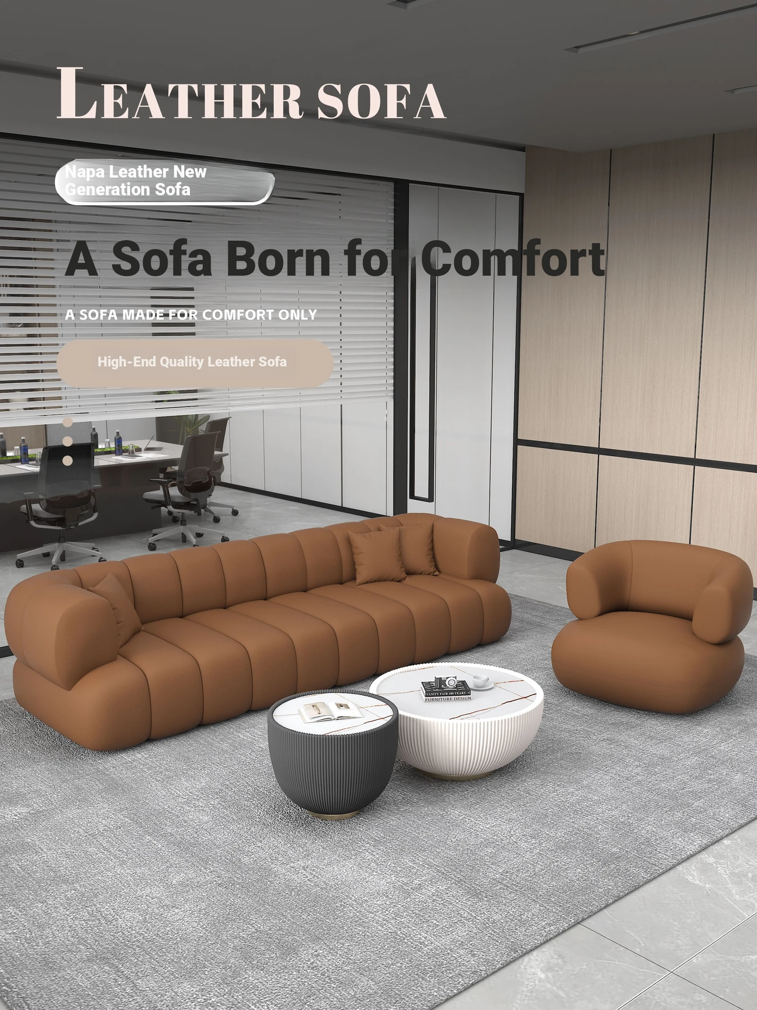 Italian Luxury Designer Straight Sofa for Office, Business Conference Room, Hotel Reception, and Boutique Rest Areas - Stylish and Comfortable Seating Solution