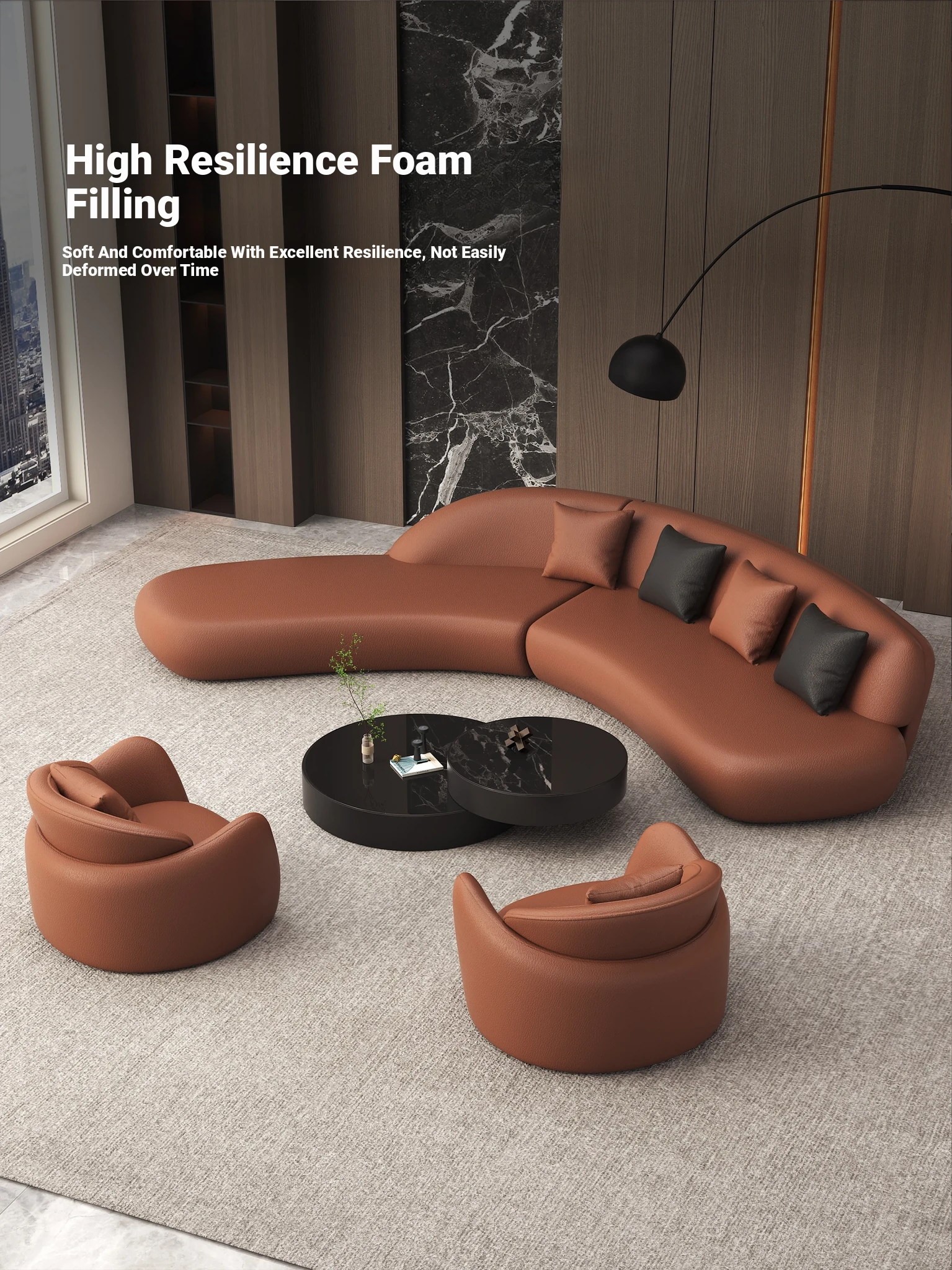 Italian Luxury Curved Corner Sofa for Villas - Ideal for Business Meetings and High-End Reception Areas in Showrooms and Clubhouses, Perfect for Elegant Living Rooms