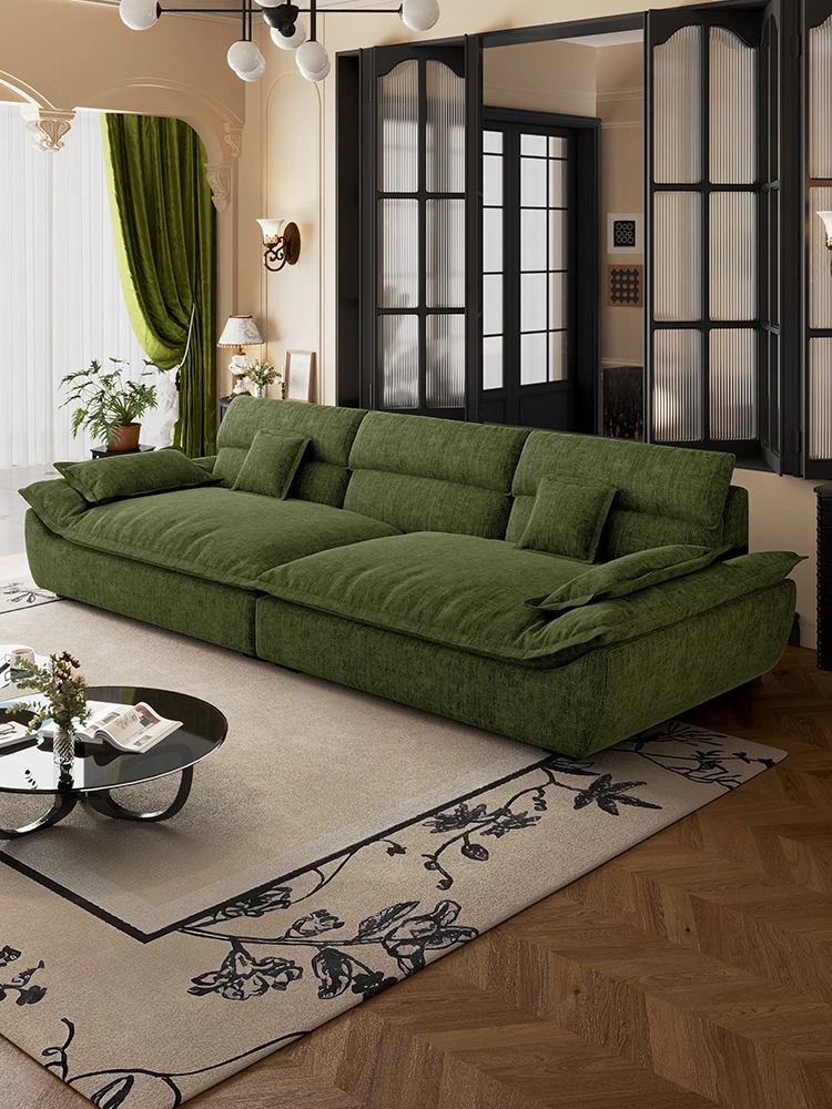 French Vintage Chenille Plush Marshmallow Puff Sofa - Creamy Green Straight Sofa for Small Living Rooms, Perfect for Cozy Spaces