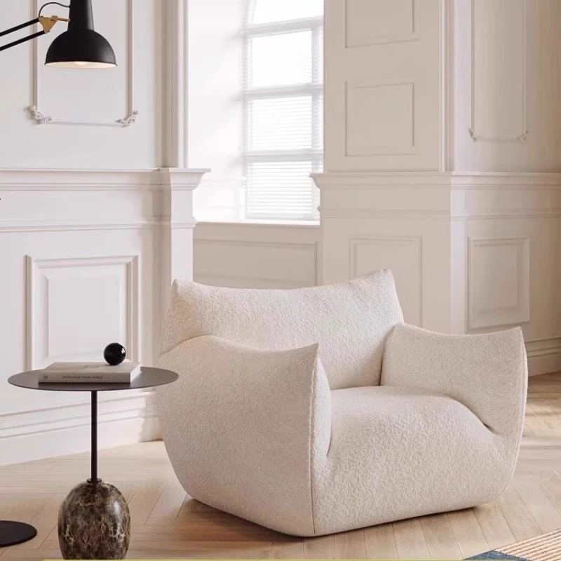 BOBO Cozy Lamb Fleece Lounge Chair - Modern Minimalist White Single Sofa for Bedroom and Balcony, Perfect for Small Spaces and Makeup Use