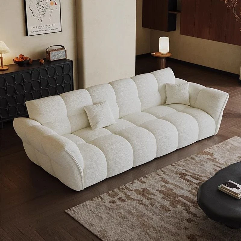 French Cream Sofa for Small Spaces - Modern Minimalist Cozy Living Room - Vintage Lamb Velvet Fabric Creative Curved Couch