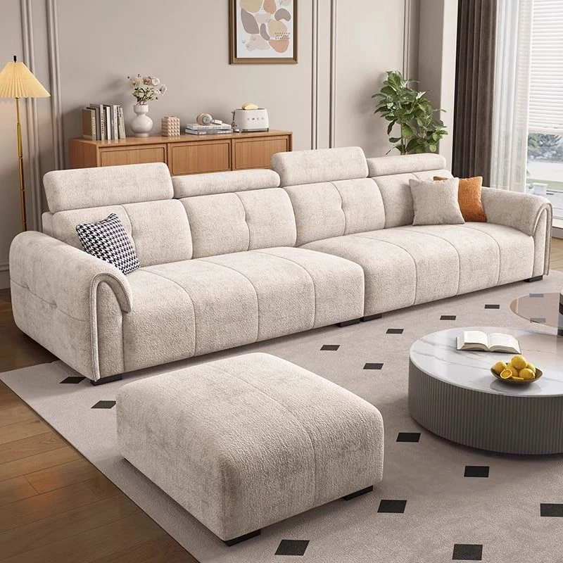 Italian Minimalist Chenille Cotton-Linen Fabric Sofa - Modern High-End Cat Scratch Resistant Upholstered Couch for Living Room, Elegant and Simple Design