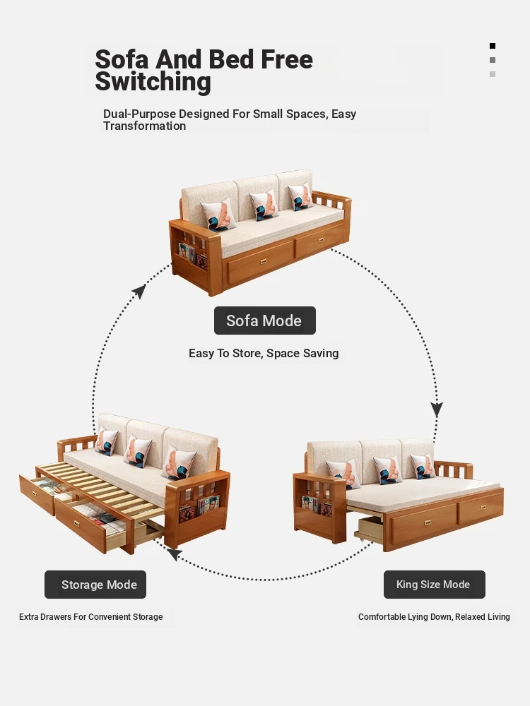 【Free Shipping to Hong Kong】Multifunctional Solid Wood Sofa Bed - 1.5m Folding Design with Storage, Perfect for Small Spaces!