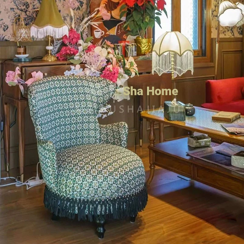 New Designer Vintage-Style Fabric Lounge Chair for Cozy Homestays - Single Lamb Fleece Sofa with Solid Wood Frame, Perfect for Relaxation and Comfort
