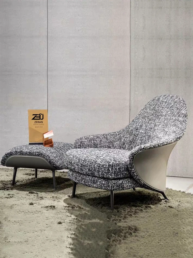 Italian Minimalist Designer Single Sofa Chair - Modern Simple Lounge Chair with Armrests and Ottoman for Living Room Comfort