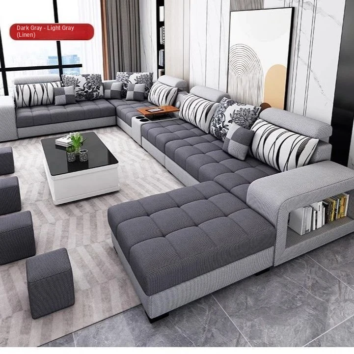 Modern Minimalist U-Shape Fabric Sofa Set with Tech Cat Paw Leather and Latex for Small Living Rooms - Perfect for Cozy Spaces!