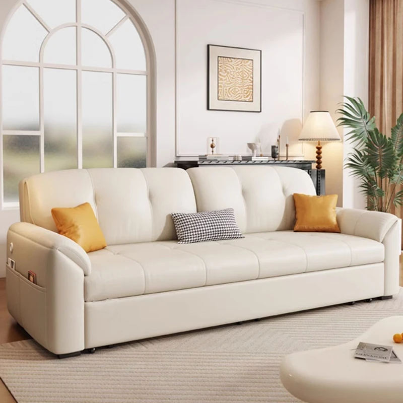 New Napa Leather Sofa Bed - Modern Minimalist Cream Style, Perfect for Small Spaces, Foldable 2-in-1 Design for Living Room Comfort