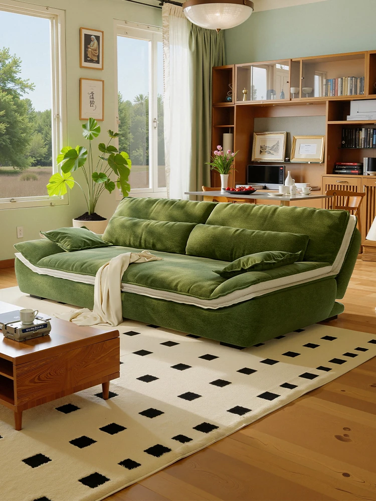 French Vintage Chenille Foldable Two-in-One Sailboat Sofa Bed - Creamy Aesthetic Fabric Sofa for Small Living Rooms