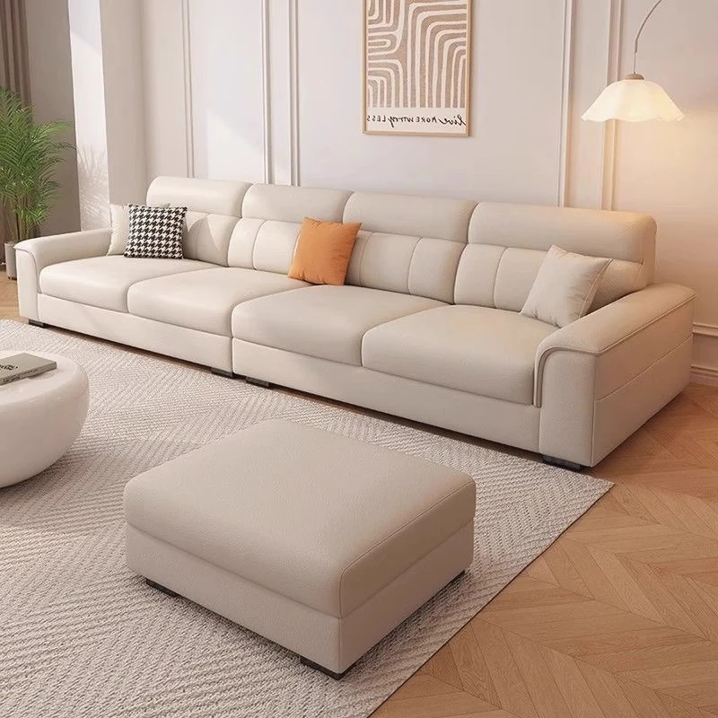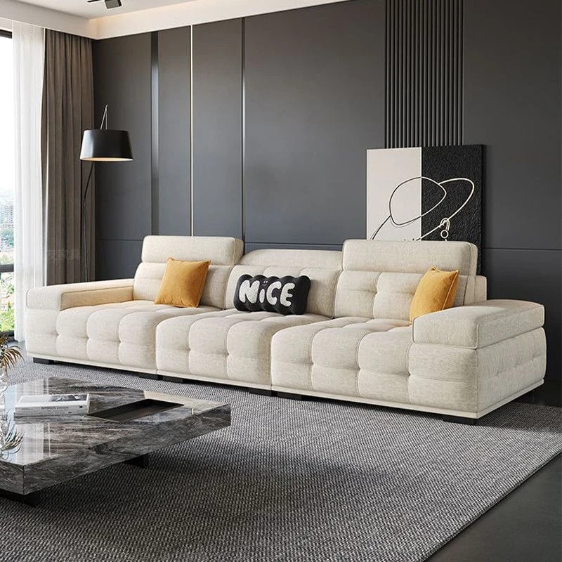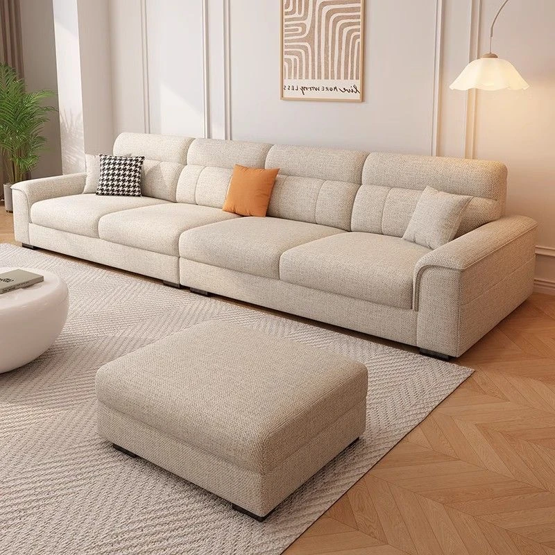 Italian Minimalist Chenille Fabric Sofa for Small Living Rooms - Designer Cream-style Straight Cotton Linen Sofa, New Arrival!