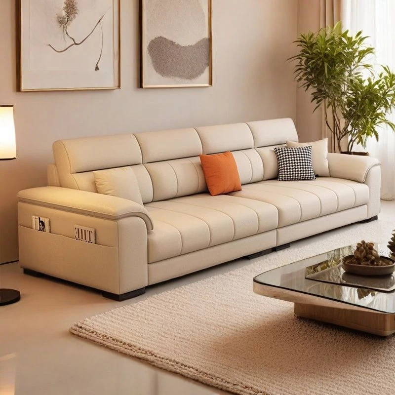 Foshan Cream Velvet Snow Flannel Cotton Linen Fabric Sofa - Removable and Washable, Minimalist Style Chaise Lounge for Living Room
