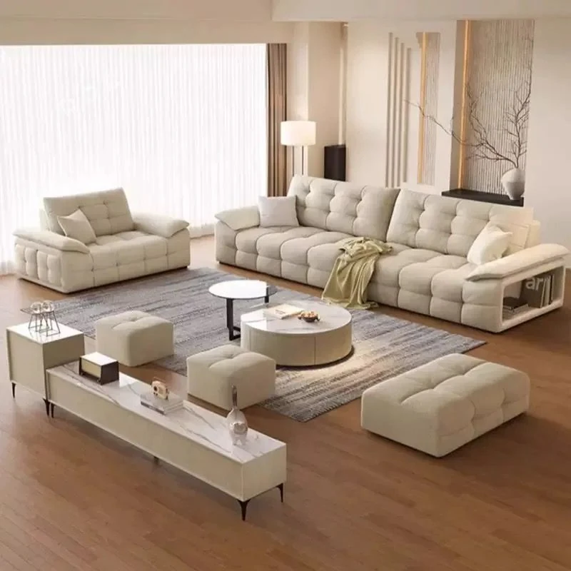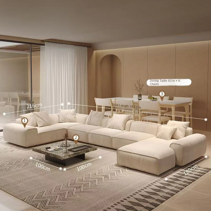 Luxurious U-Shaped Sofa Set in Suede Fabric - Perfect for Spacious Living Rooms, Ideal for Modern and Cozy Home Décor