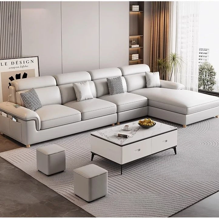 Luxury Modern L-Shaped Sofa for Spacious Living Rooms, Villas, and Hotel Reception Areas - Perfect for Stylish Office Lounges and Guest Waiting Spaces.