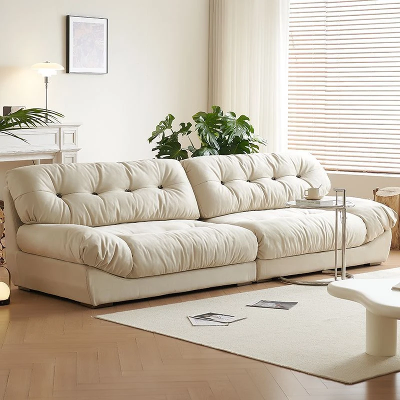 French Cream Velvet High-Back Marshmallow Sofa - Stylish Puff Fabric Sofa for Small Living Rooms, Perfect for Cozy Spaces