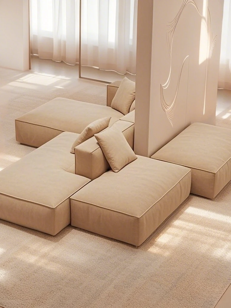 Minimalist Modular Washable Island Sofa - Versatile Double-Sided Design with Removable Backrest for Flexible Living Room Arrangements - Stylish and Functional Fabric Block Sofa