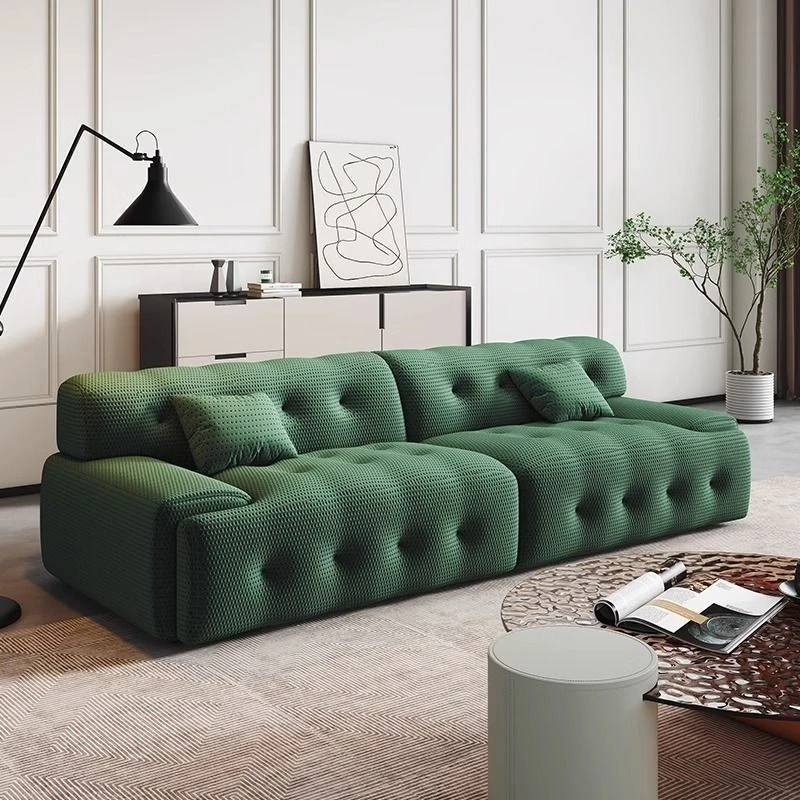 Rochford Retro Straight-Line Designer Sofa - French Living Room Modern Small Space Green Fabric Sofa for Beauty Salons and Cozy Homes