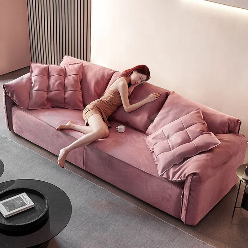 Modern Minimalist Sweet Persimmon Sailboat Sofa - Italian Straight Chenille Cloudback with Adjustable Extra-Wide Design for Ultimate Comfort in Your Living Room