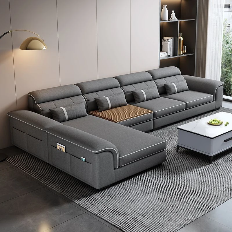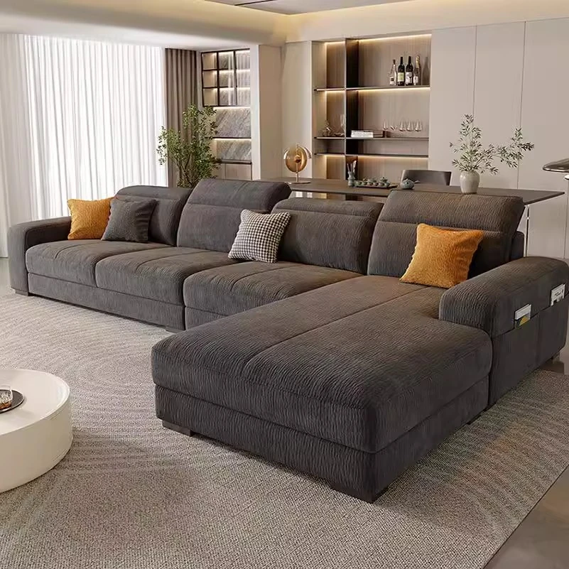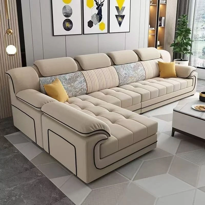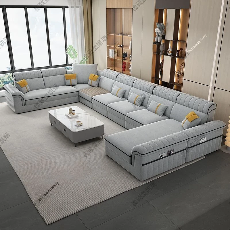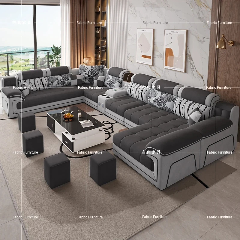 New Removable U-Shaped Cotton Linen Sofa for Large Living Rooms – Stylish Combination Furniture with Cool Seat and Latex Chaise Lounge