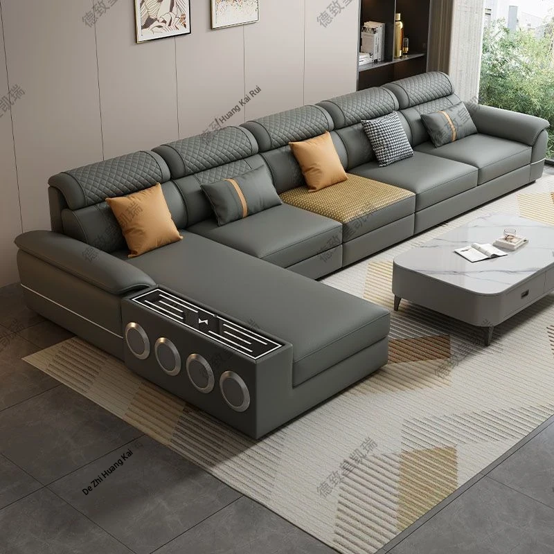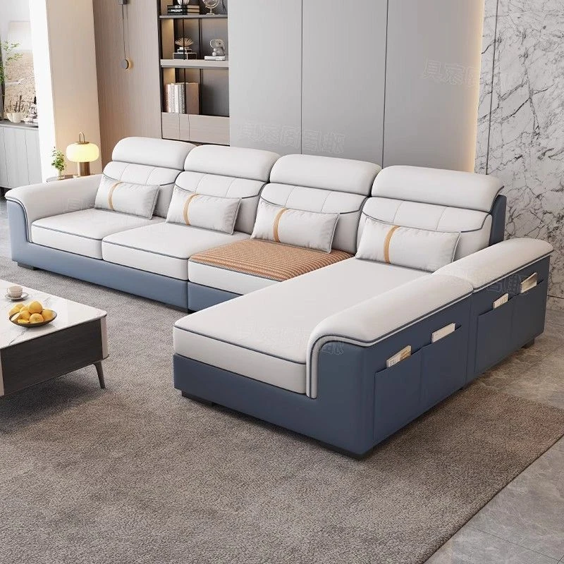Modern U-Shaped Complete Cat Scratch Leather Sofa Set for Spacious Living Rooms - Elegant Chaise Lounge with Latex Cushions