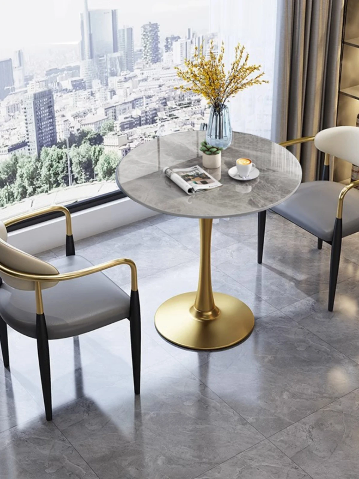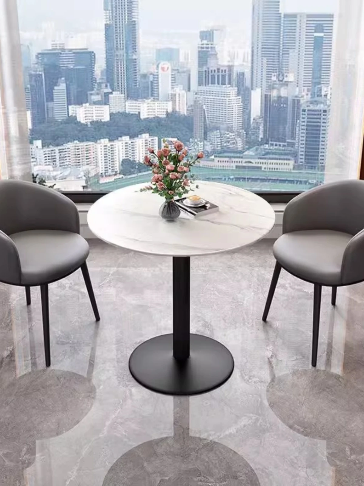Modern Minimalist Conference Table and Chair Set - Ideal for Commercial Use in Milk Tea Shops, Cozy Balconies, and Office Reception Areas - Perfect Small Round Table for Casual Meetings and Guest Welcoming