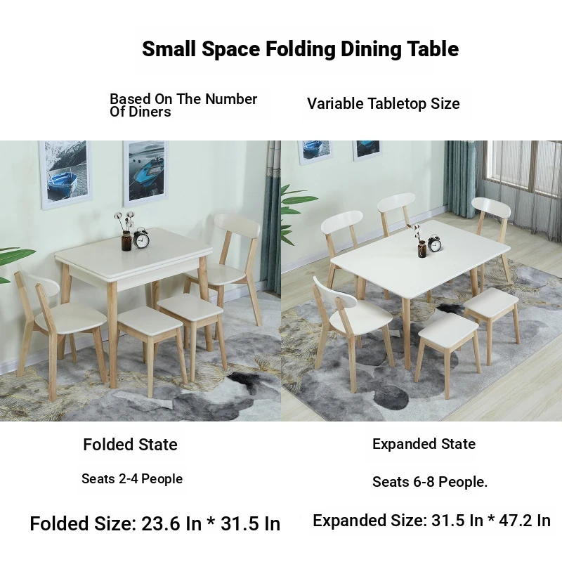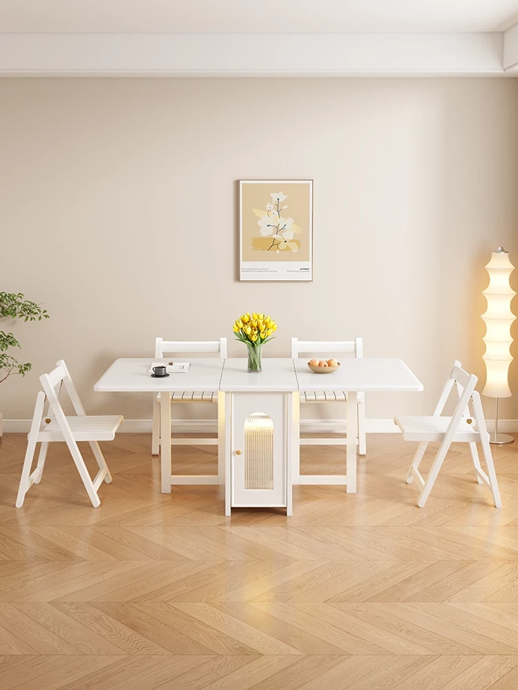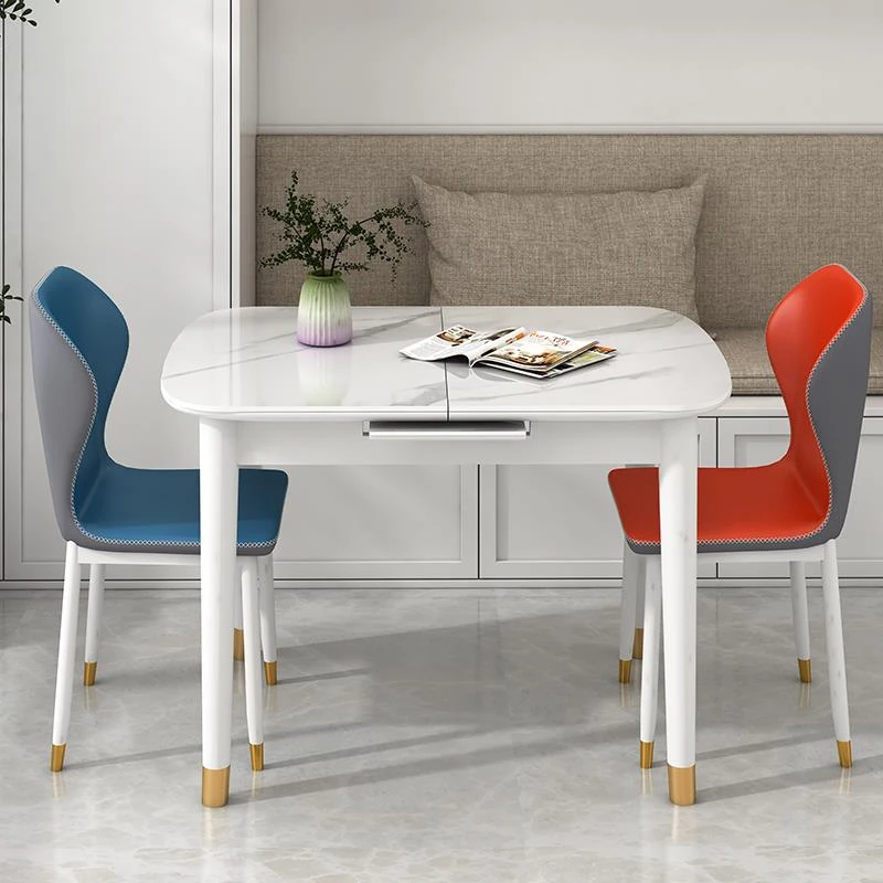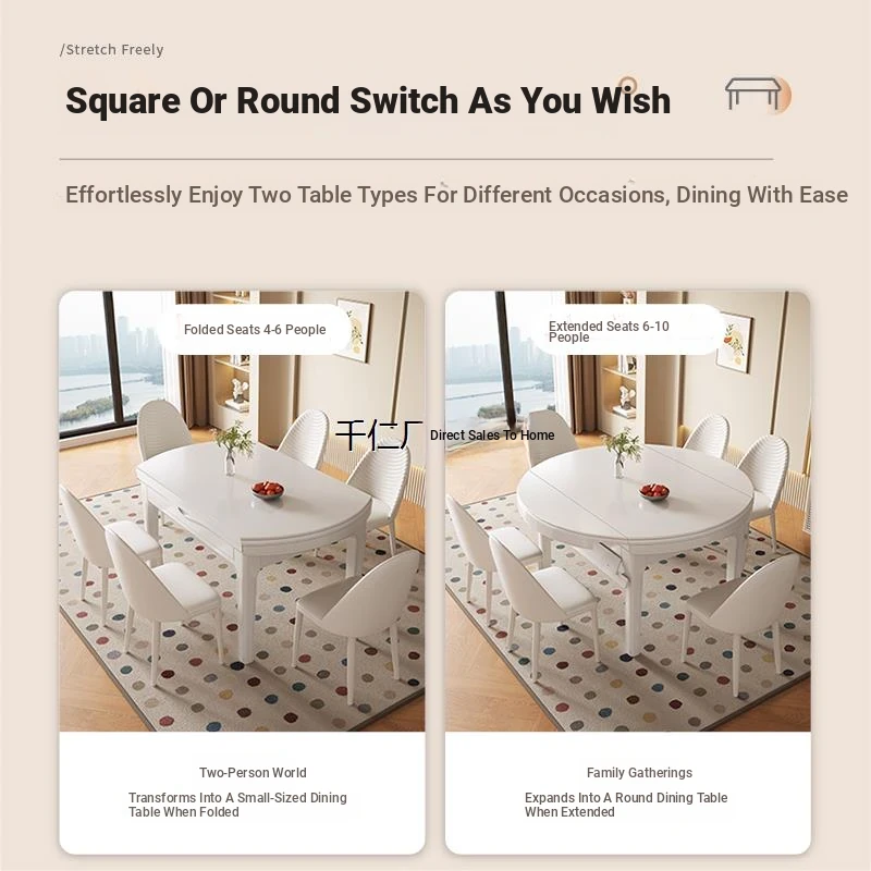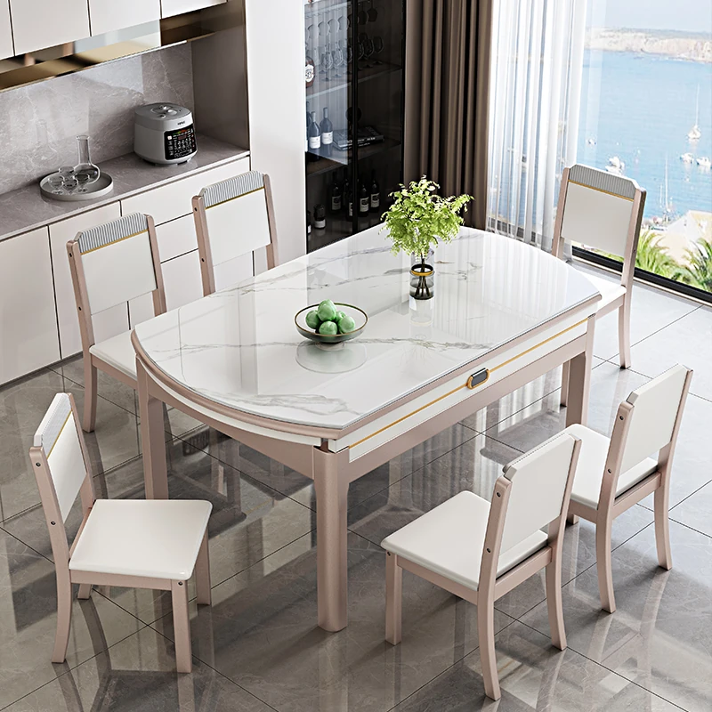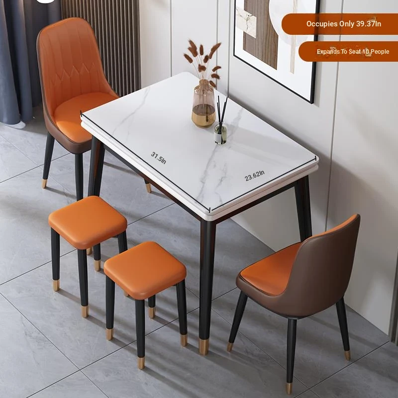 Foldable Expandable Microcrystalline Stone Dining Table - Versatile Rectangular to Round Design for Home, Modern Minimalist Dining Set with Chairs