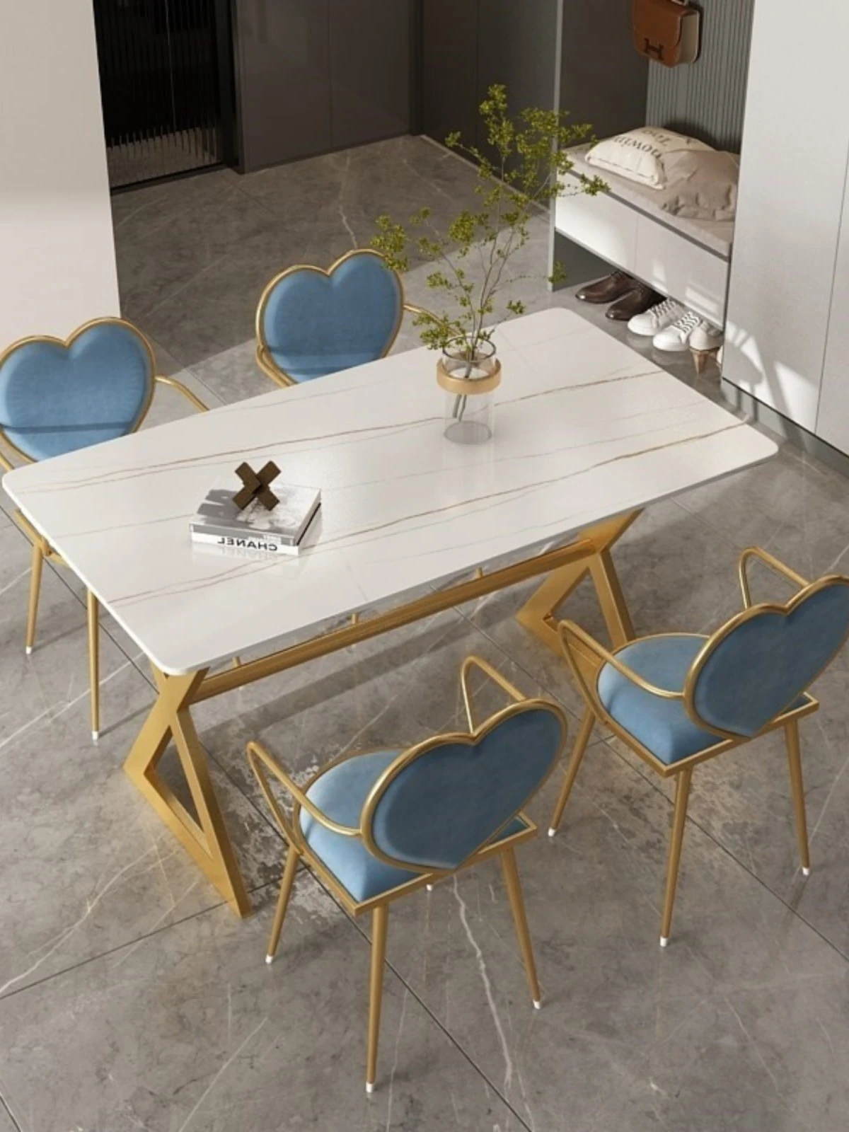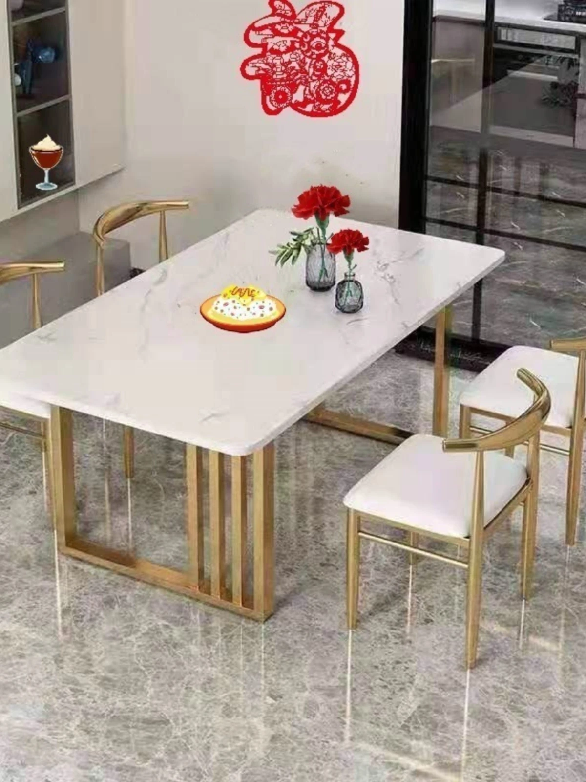 2025 New Luxury Marble Dining Table Set - Modern Minimalist Rectangular Table and Chairs for Home Use, Elevate Your Dining Experience with Style and Elegance.
