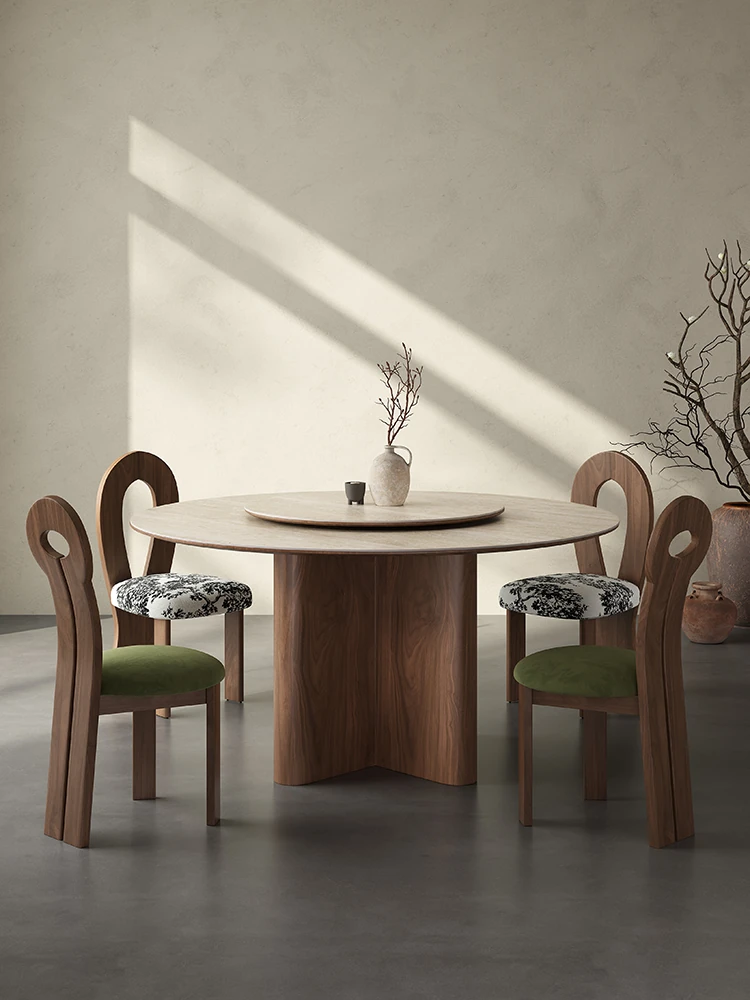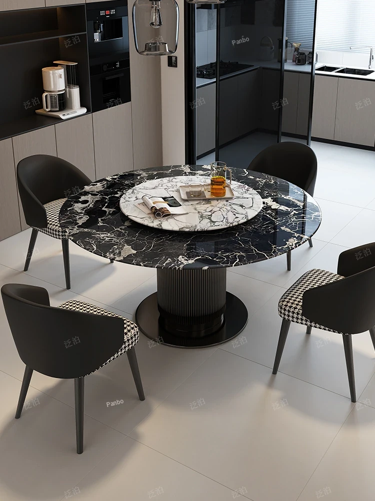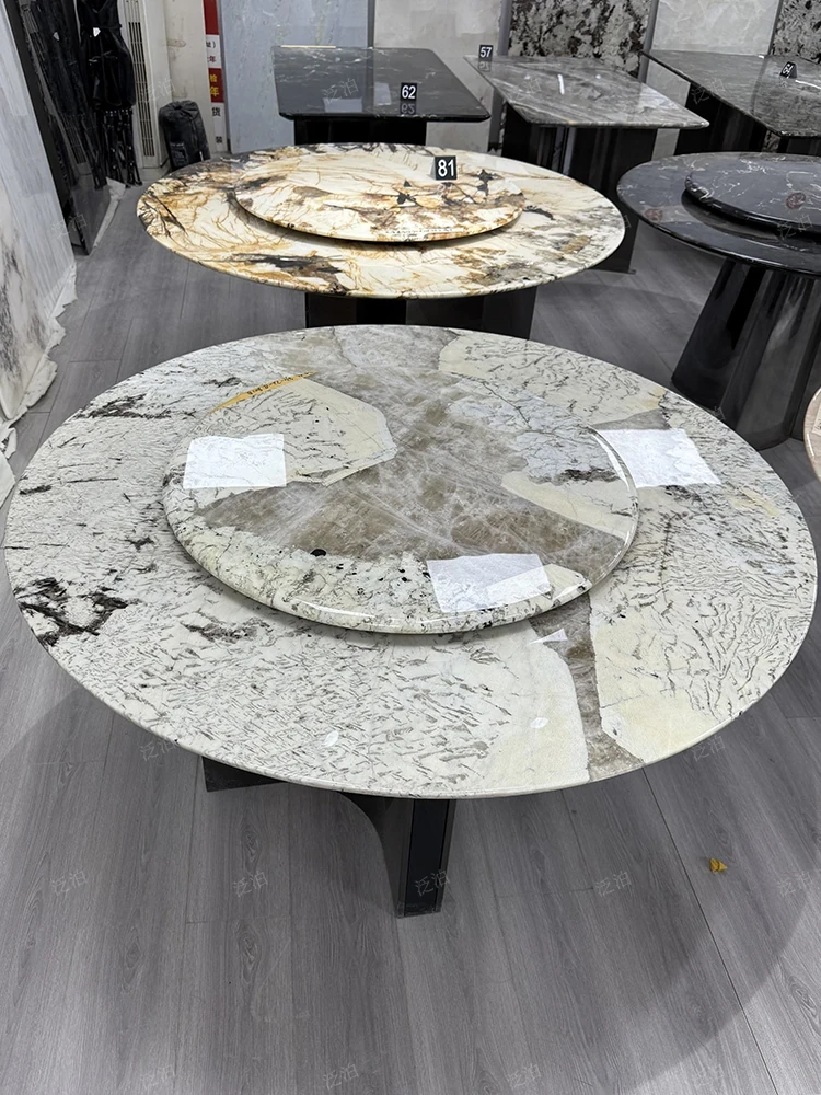 Luxury Italian-Style Round Dining Table Set with Natural Imported Marble - Perfect for Modern Open Spaces and High-End Villas, Ideal for Home Use