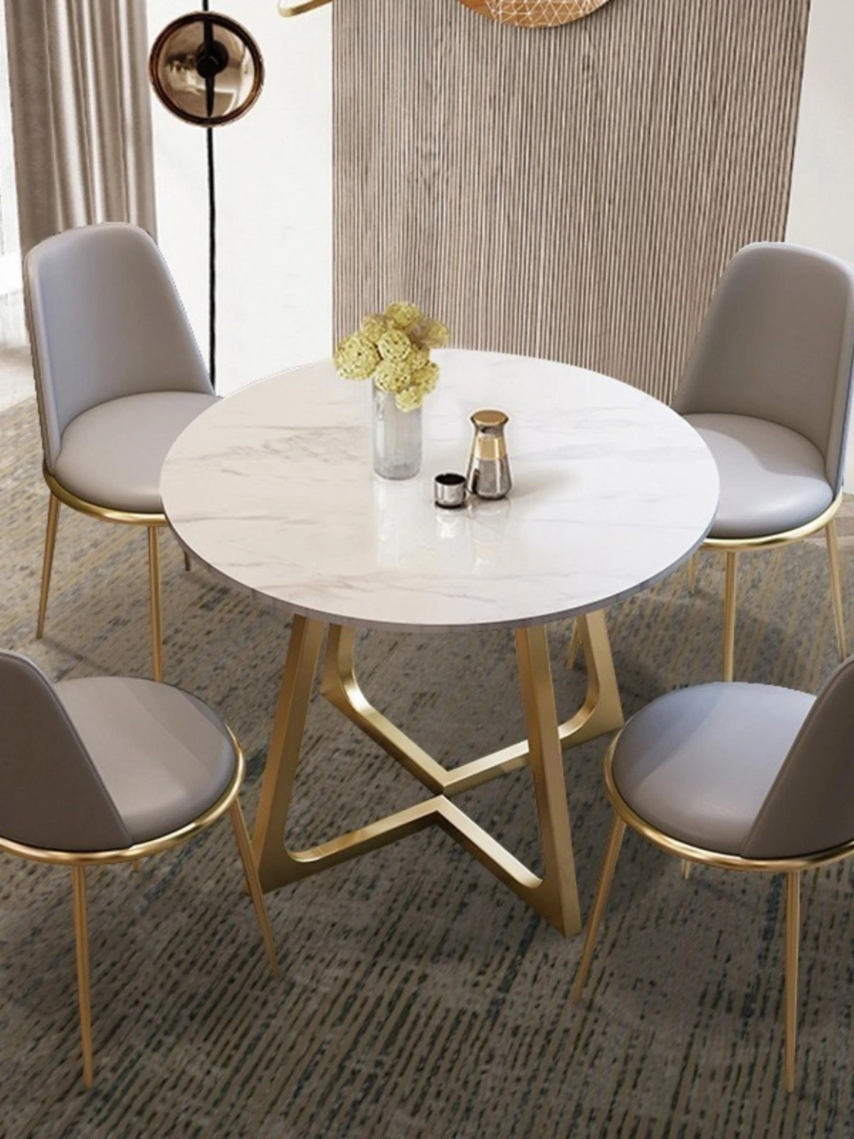 Modern Minimalist Light Luxury Marble Dining Table Set with Stainless Steel Round Table - Perfect for Small Spaces, Ideal for Home Dining