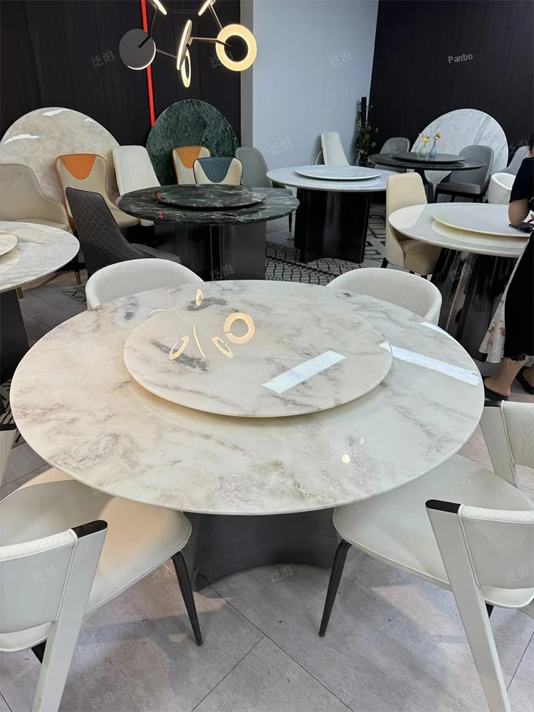 Luxury Imported Natural Stone Round Dining Table - Elegant Italian Minimalist Marble Design for High-End Dining Experience
