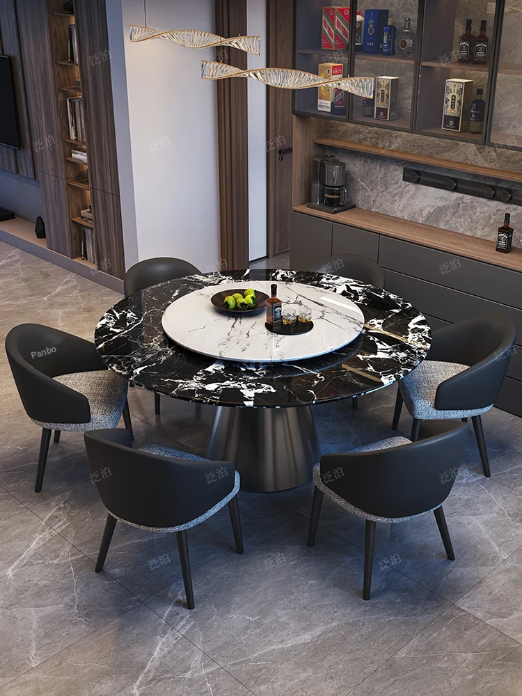 Luxury Natural Marble Round Dining Table Set from Foshan, Guangdong - Modern High-End Villa Dining Furniture for Stylish Homes