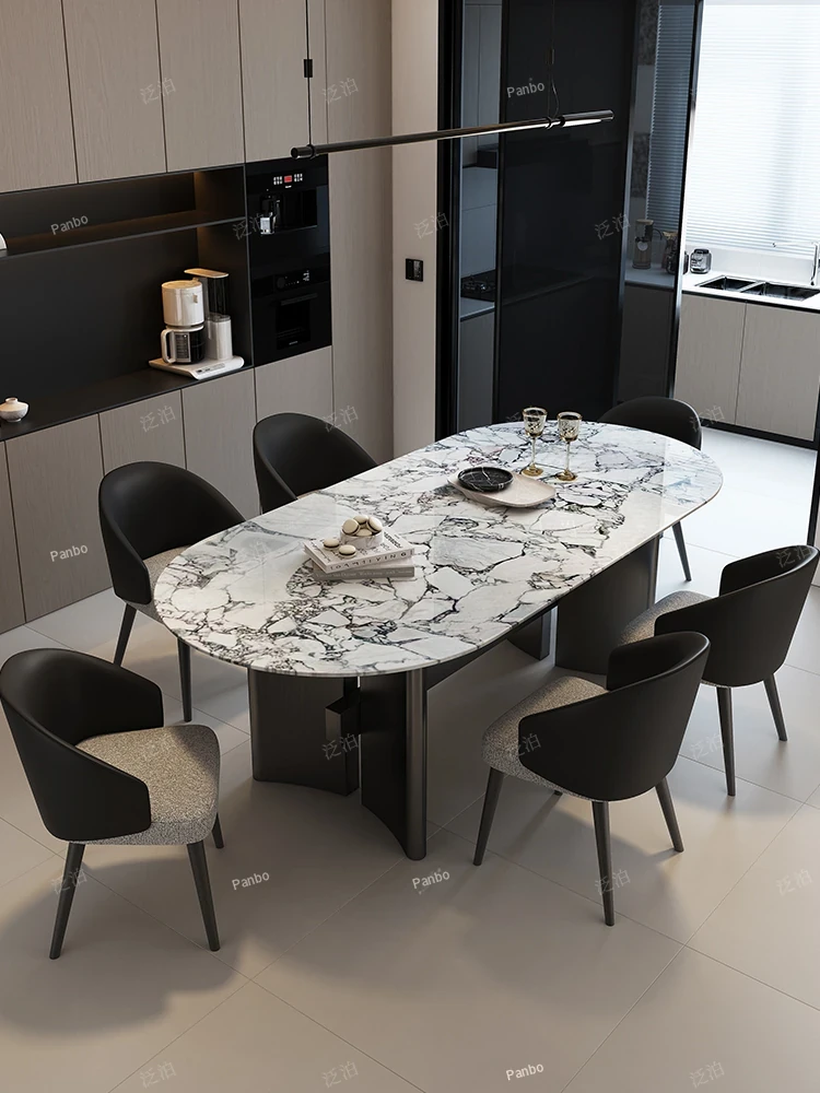 Luxury Natural Marble Dining Table Set - Modern Italian Minimalist Design with High-End Carbon Steel Chairs for a Chic Home Dining Experience