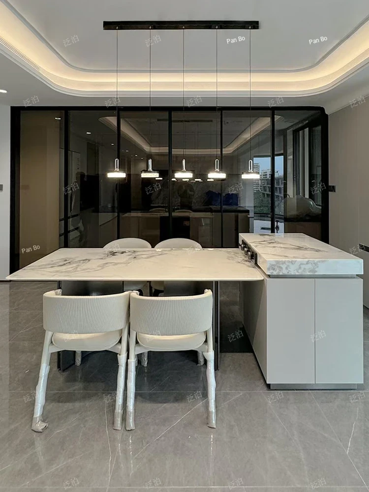 Modern Luxury Marble Dining Table Set - Sleek and Elegant Home Dining Solution with Microcrystalline Stone - Perfect for Stylish Meals and Family Gatherings