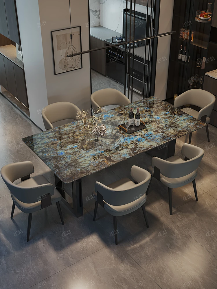 Luxury Natural Stone Dining Table from Foshan, Guangdong - Modern Minimalist Rectangular Design for Upscale Homes, Complete with Elegant Chairs - Perfect for Stylish Dining Experiences.