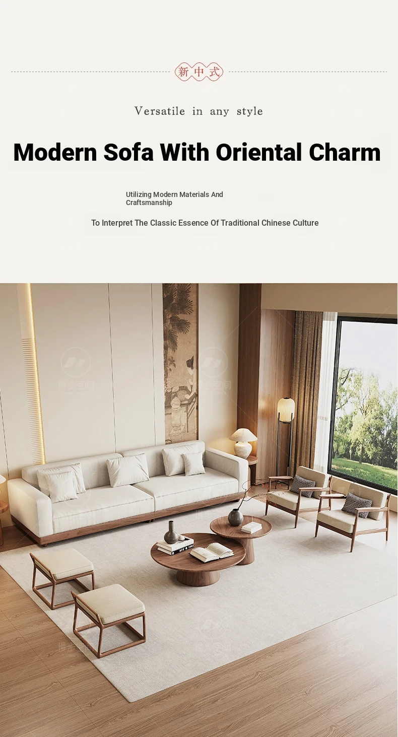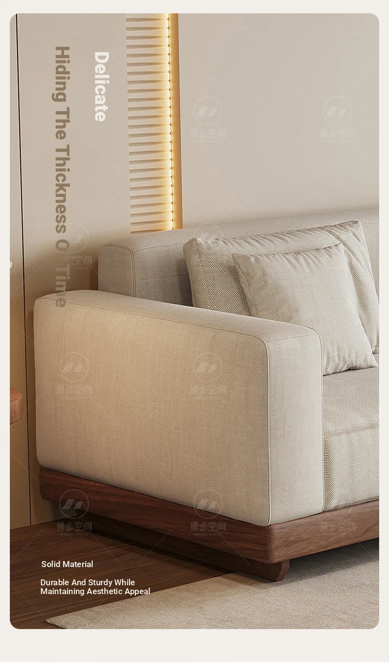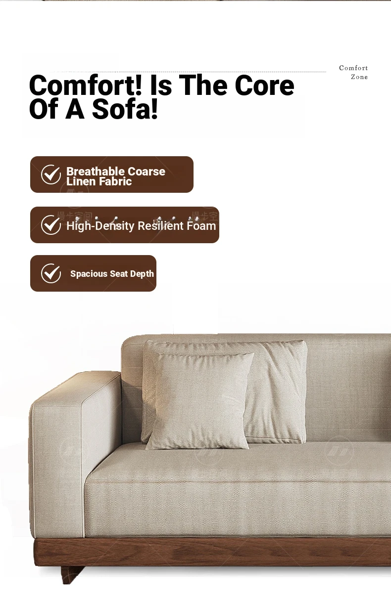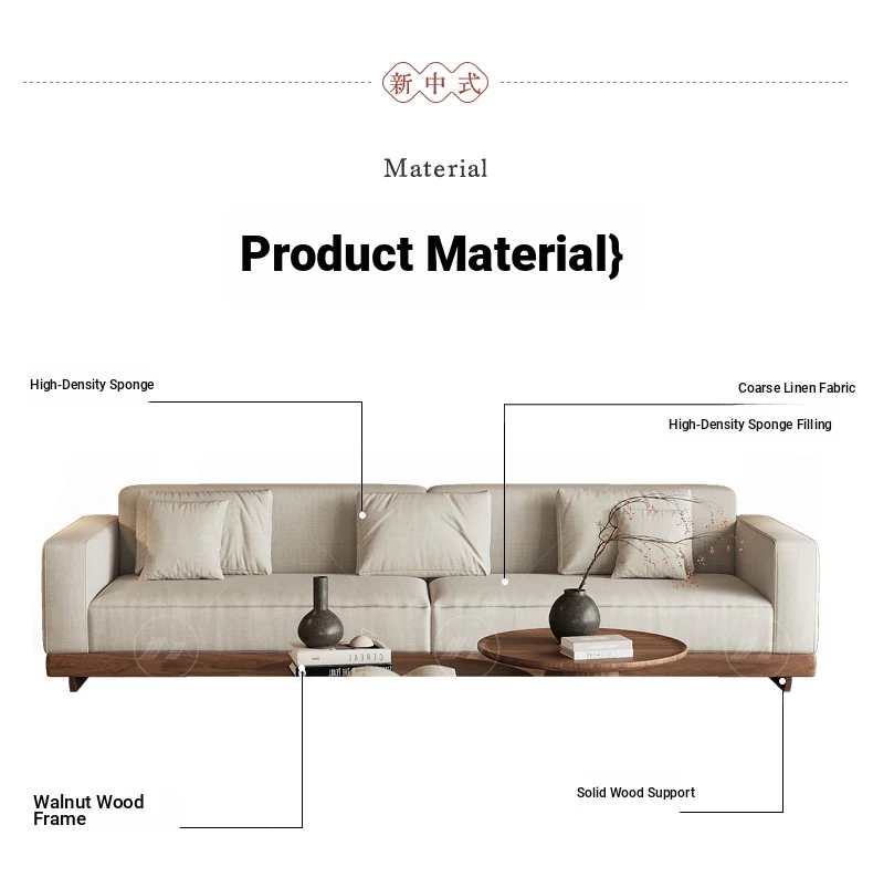 2025 New Arrivals: Solid Black Walnut Sofa for Living Room - Modern Chinese Style with Directly Placed Cotton-Linen Fabric, Inspired by Song Aesthetics