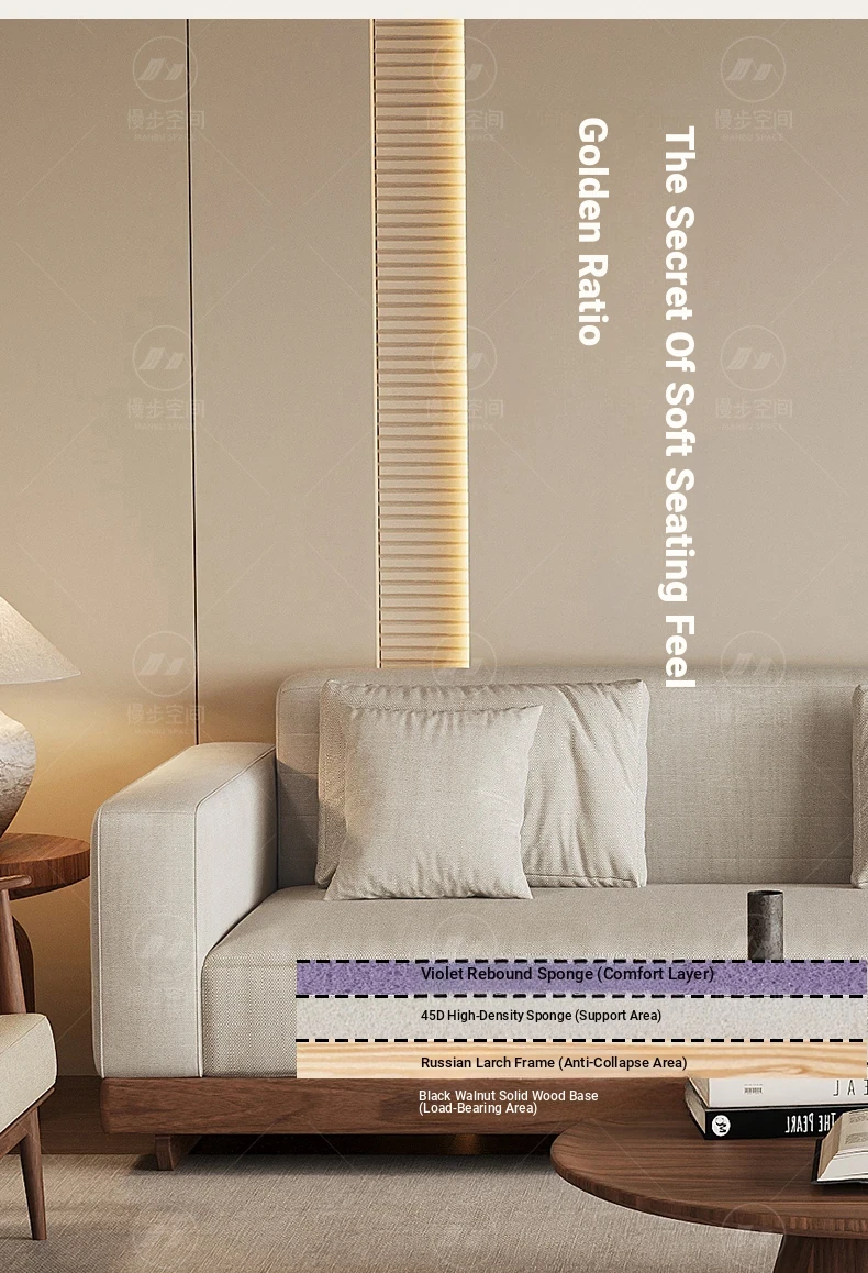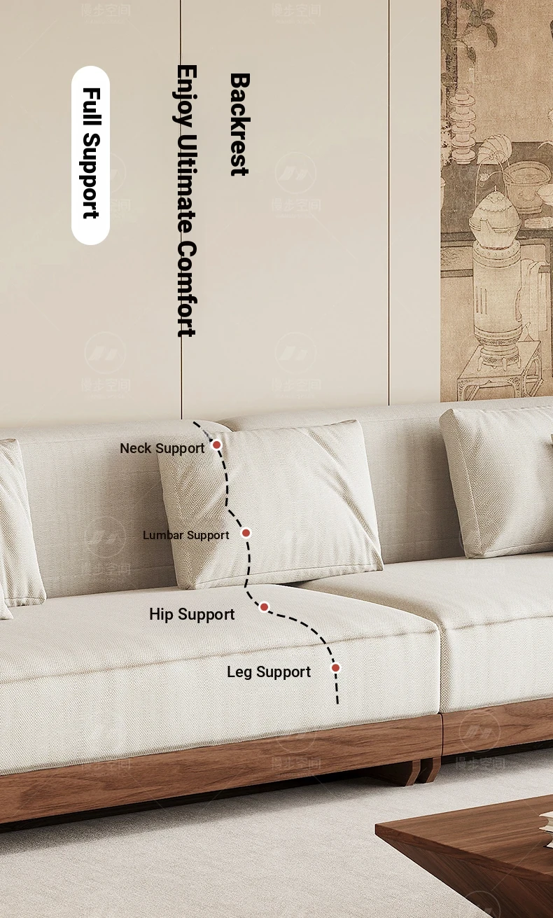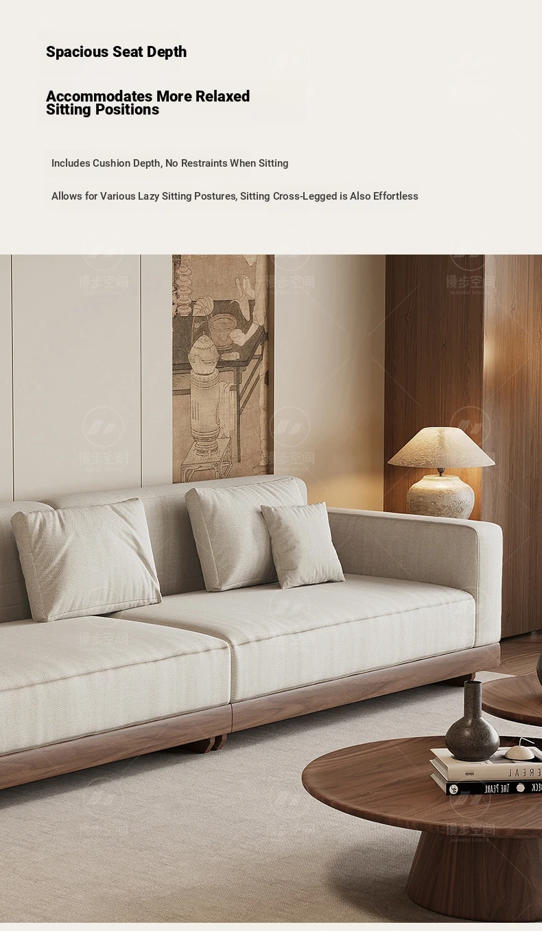 2025 New Arrivals: Solid Black Walnut Sofa for Living Room - Modern Chinese Style with Directly Placed Cotton-Linen Fabric, Inspired by Song Aesthetics