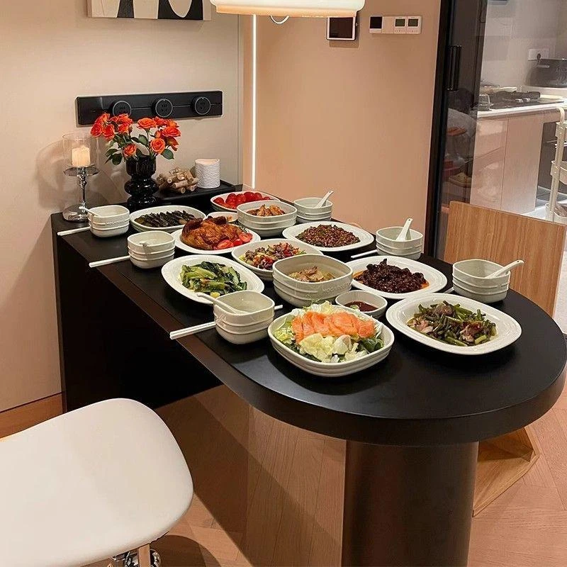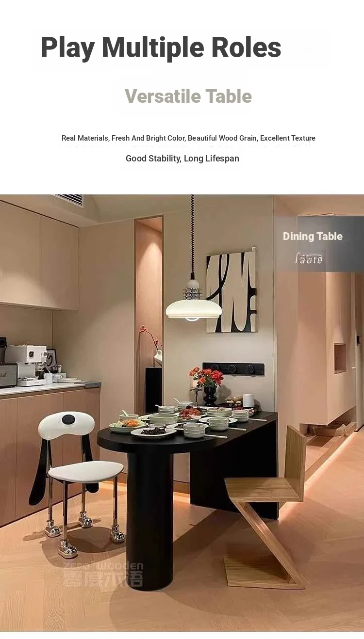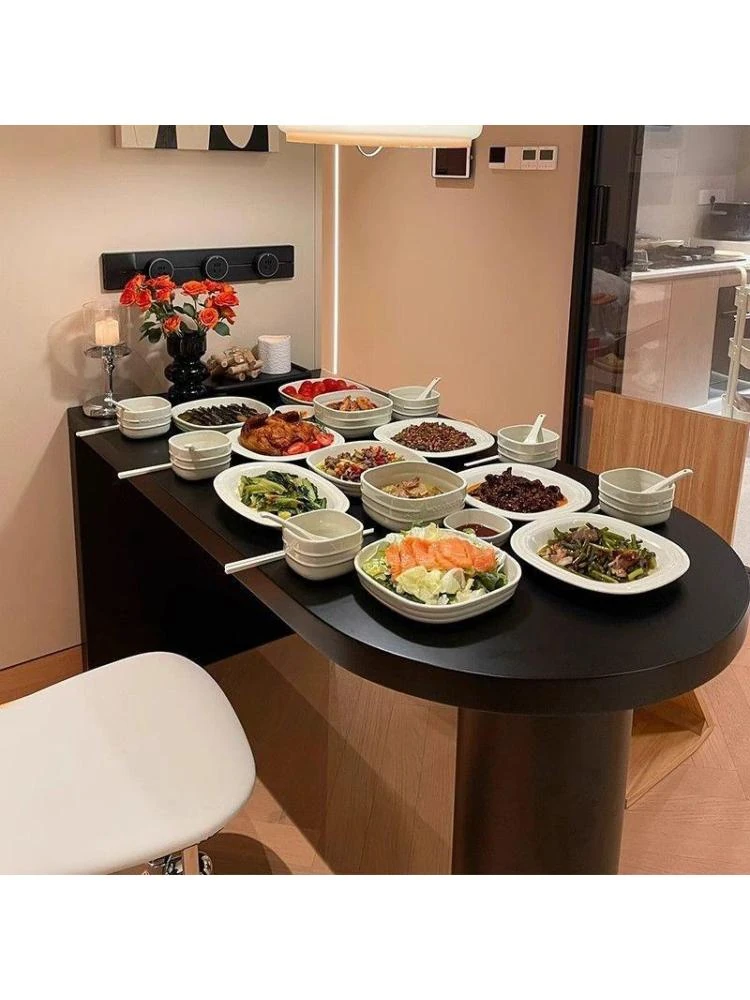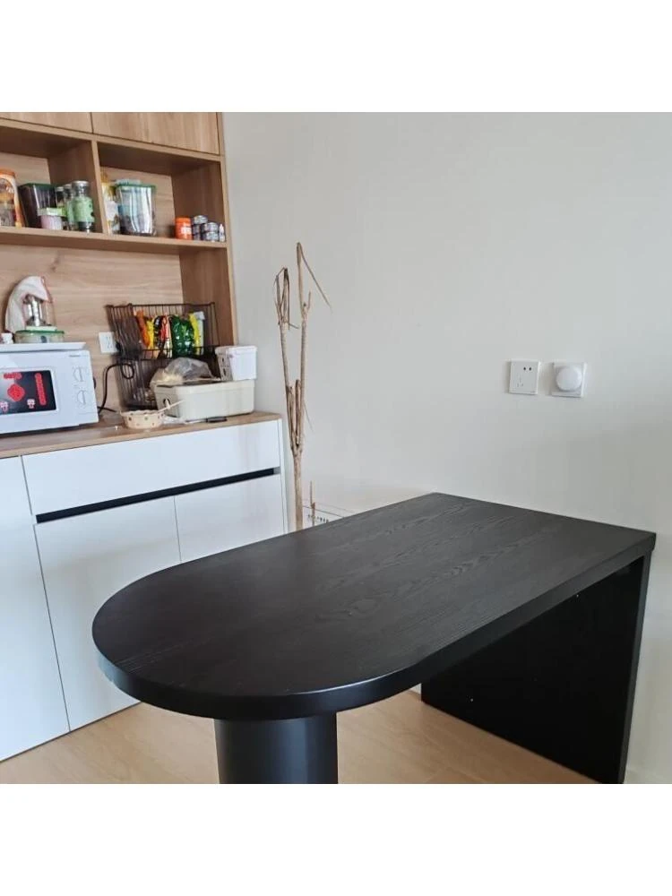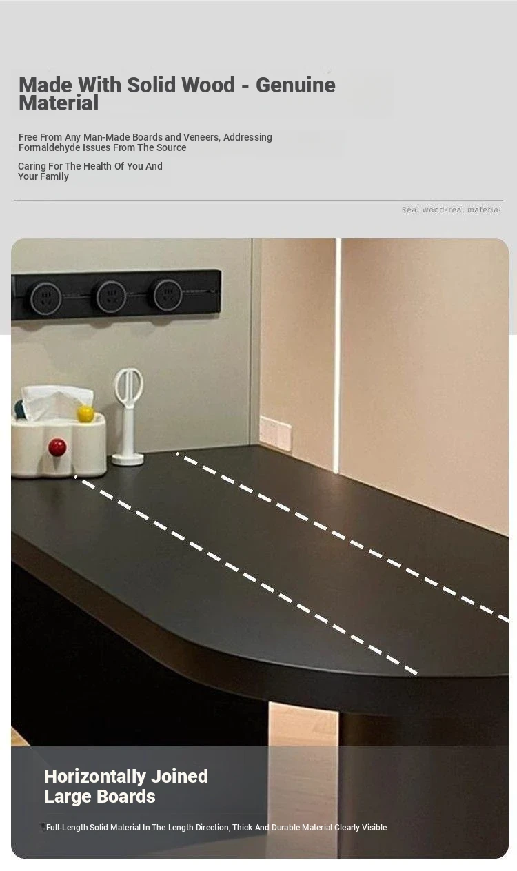 Elegant Black Oval Solid Wood Wall-Mounted Dining Table - Perfect for Small Spaces, Multifunctional as a Study Desk or Dining Table - Scandinavian Style Natural Wood Furniture for Your Living Room