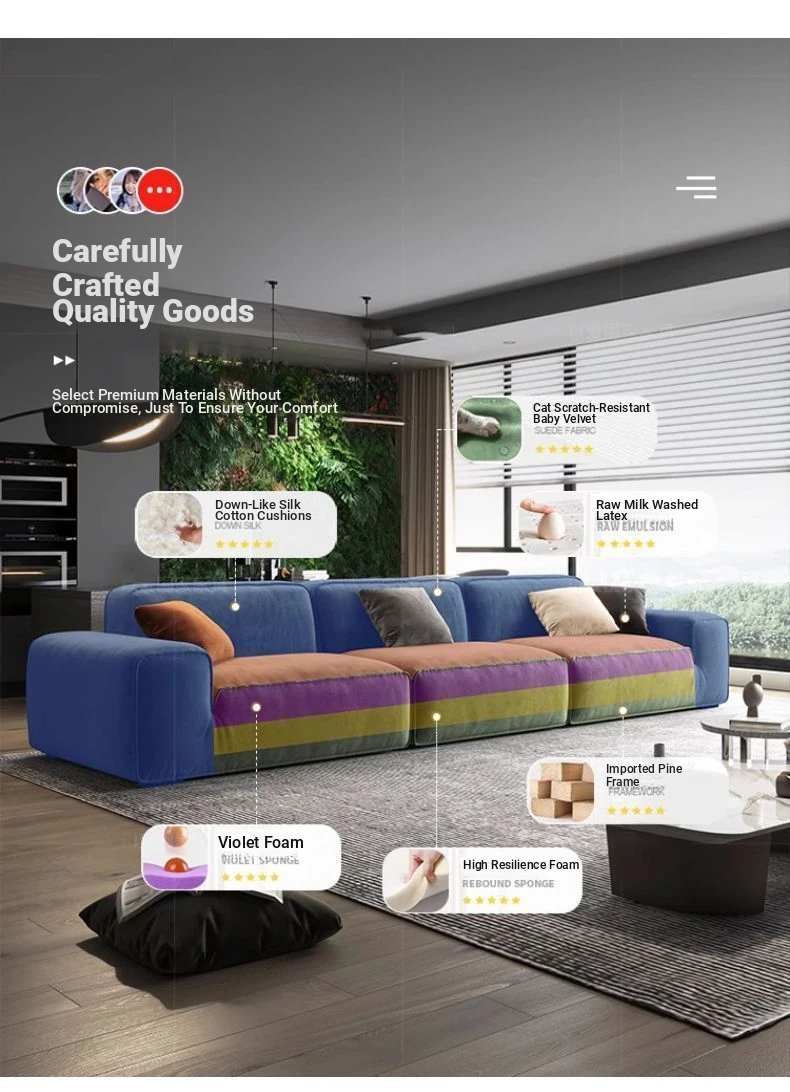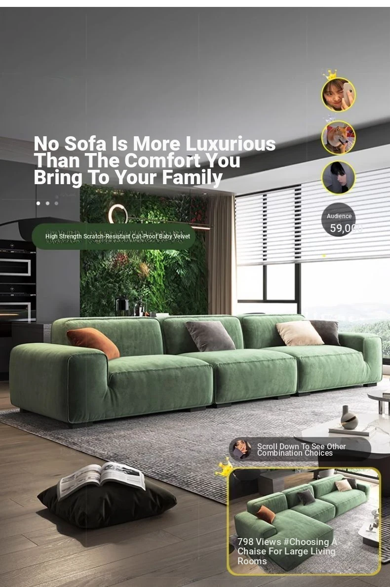 Elegant Italian Minimalist Velvet Sofa - Durable Cat-Friendly Fabric for Living Room, Perfect for Small Spaces, Stylish and Luxurious Design