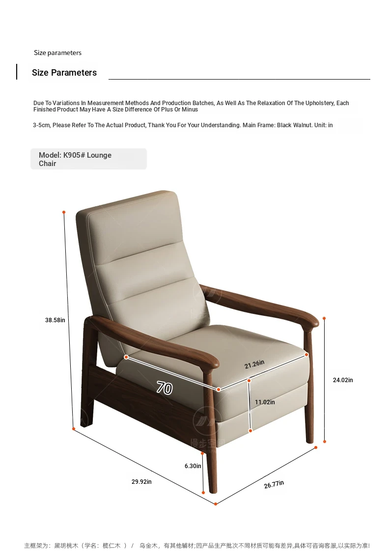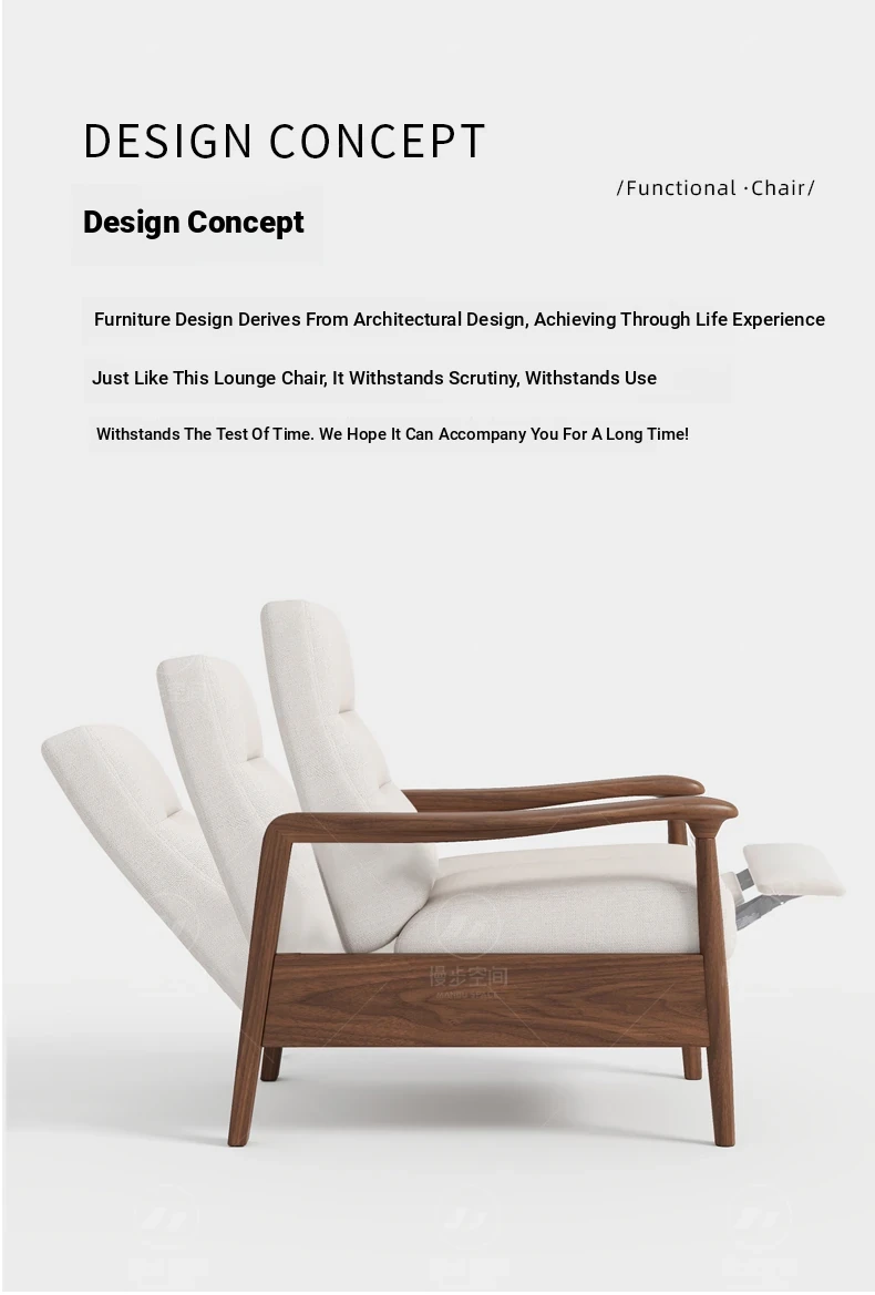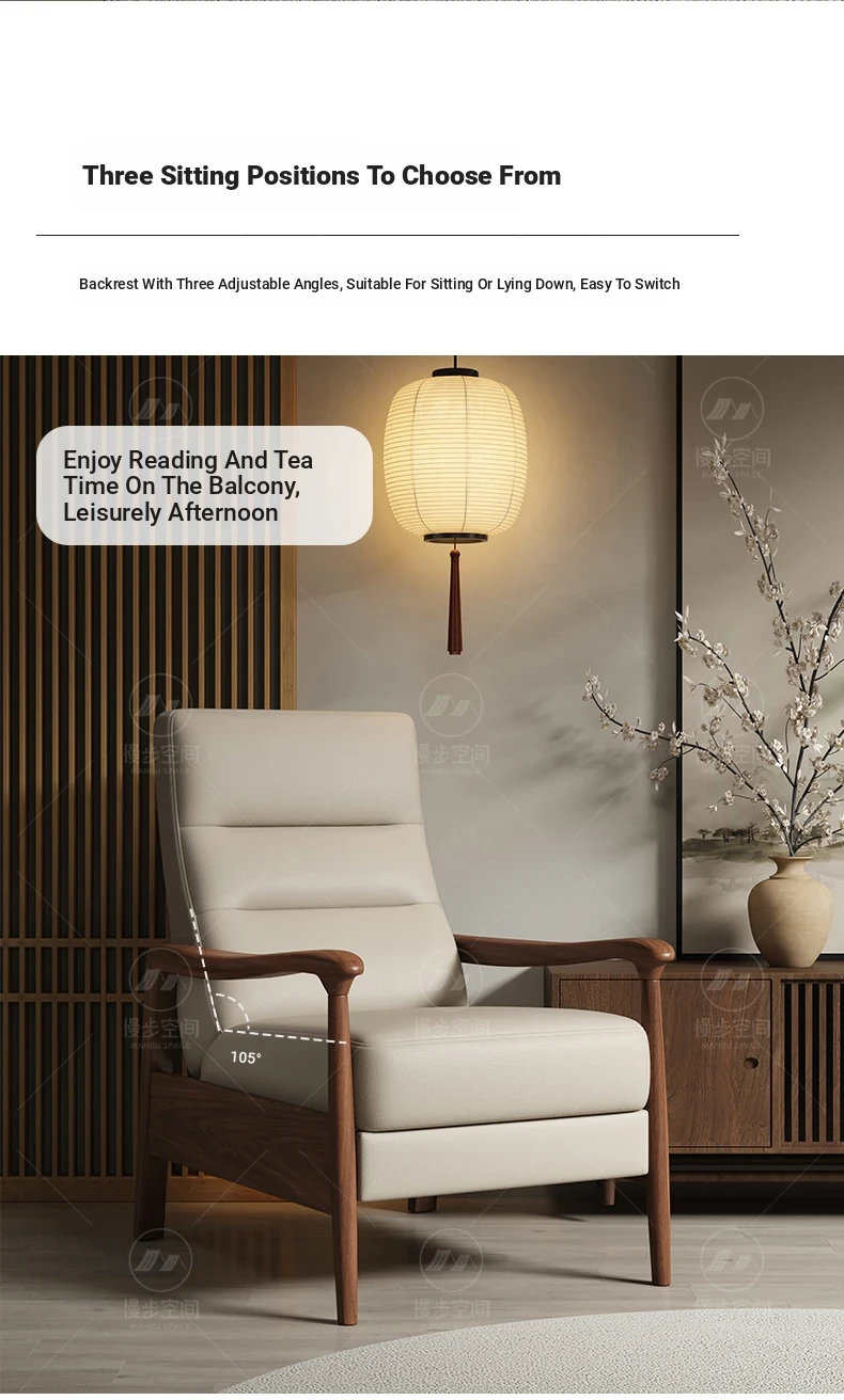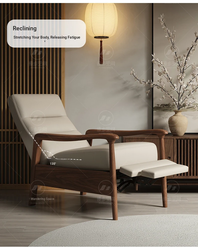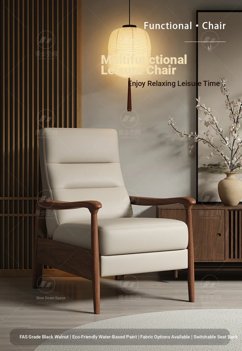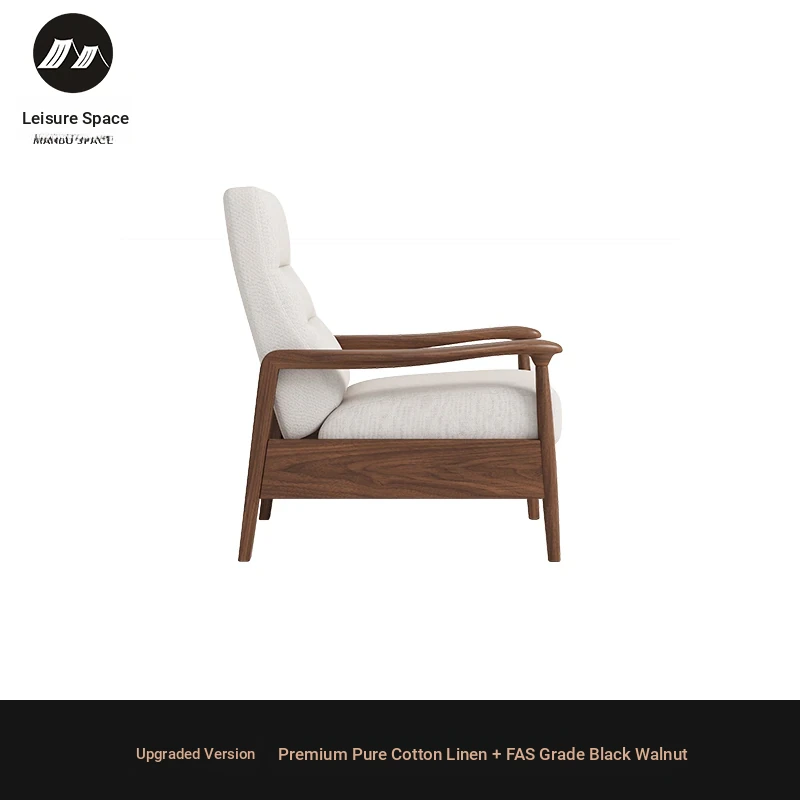 Elegant Song Style Black Walnut Solid Wood Single Sofa Chair - High-End Multifunctional Lounge Chair for Home Living Room, Adjustable for Ultimate Comfort